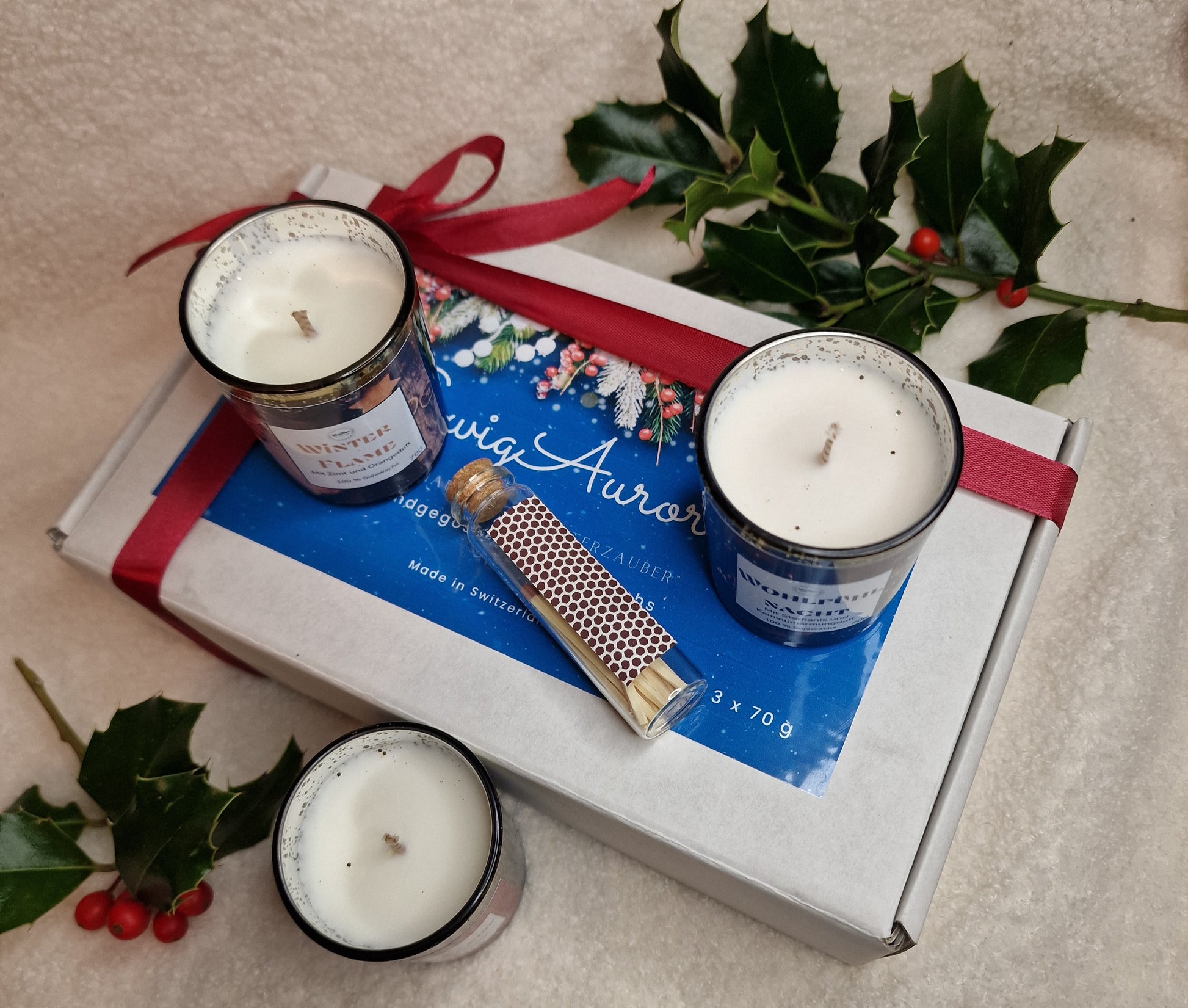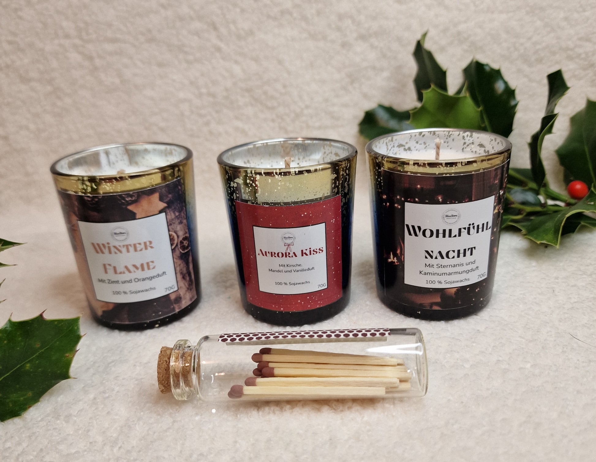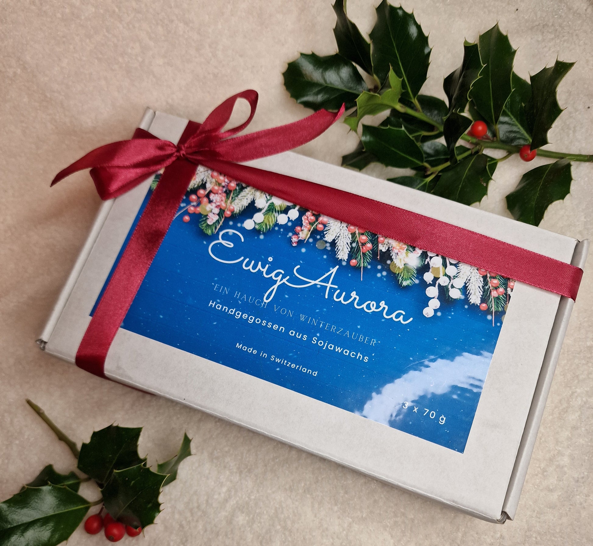 EwigAurora – Dreier-Kerzenset: Aurora Kiss, Winter Flame & Wohlfühl Nacht