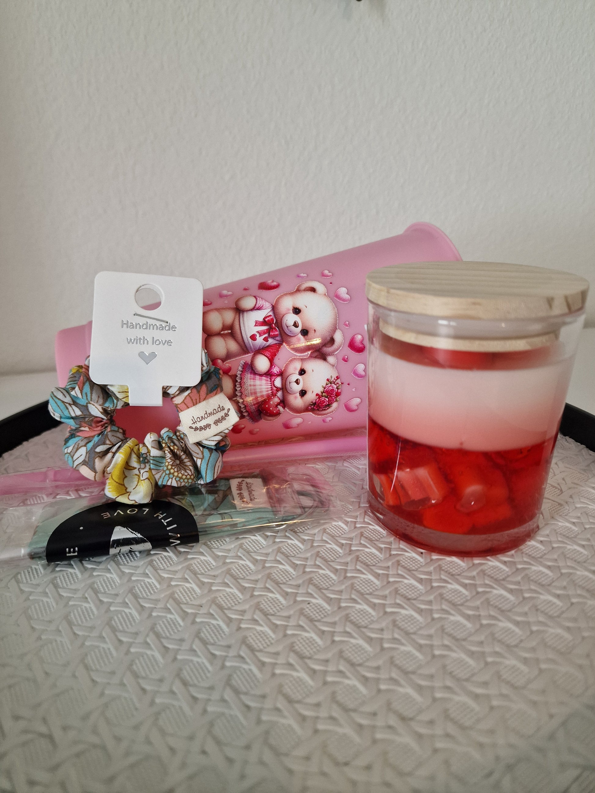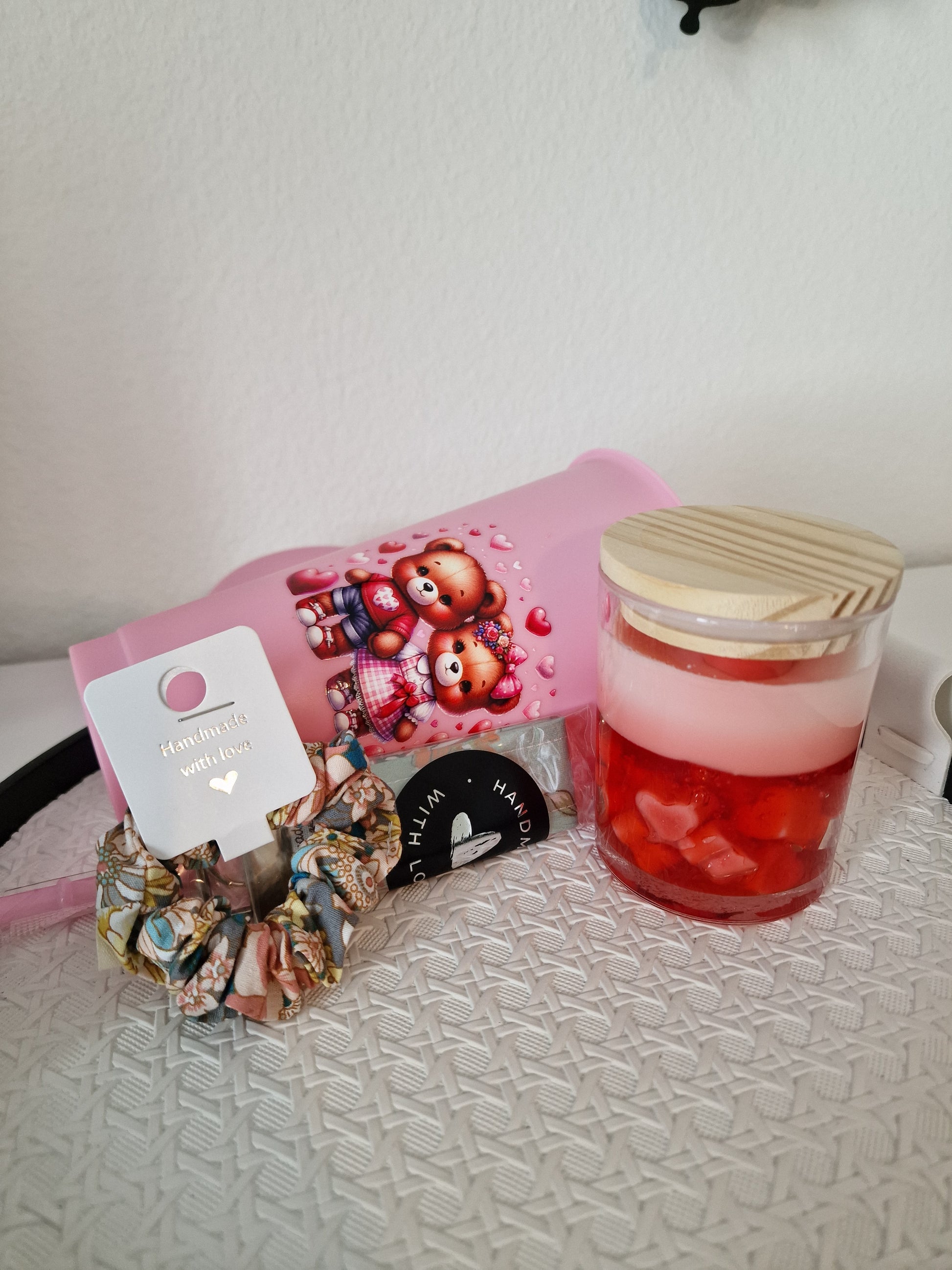 Ein zartes und liebevoll gestaltetes Geschenkset in Rosa – ideal für besondere Anlässe oder als kleine Aufmerksamkeit mit großer Wirkung. Die perfekte Kombination aus Duft, Stil und handgemachten Details.