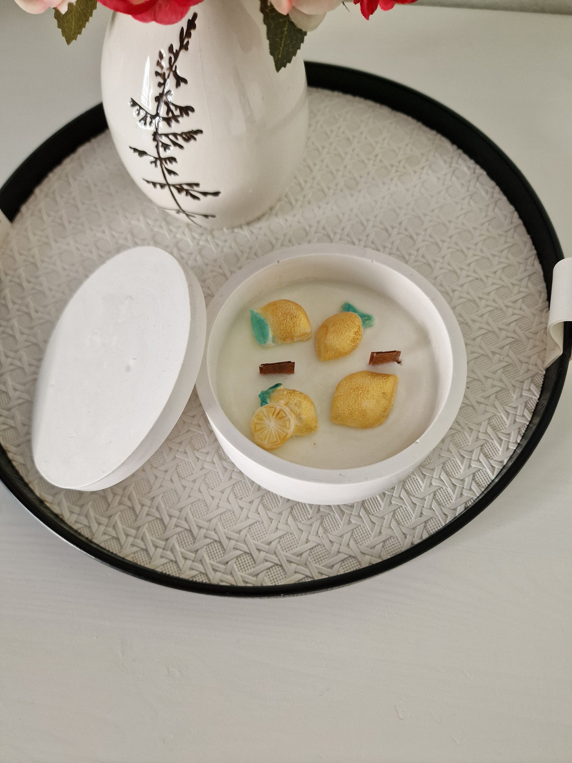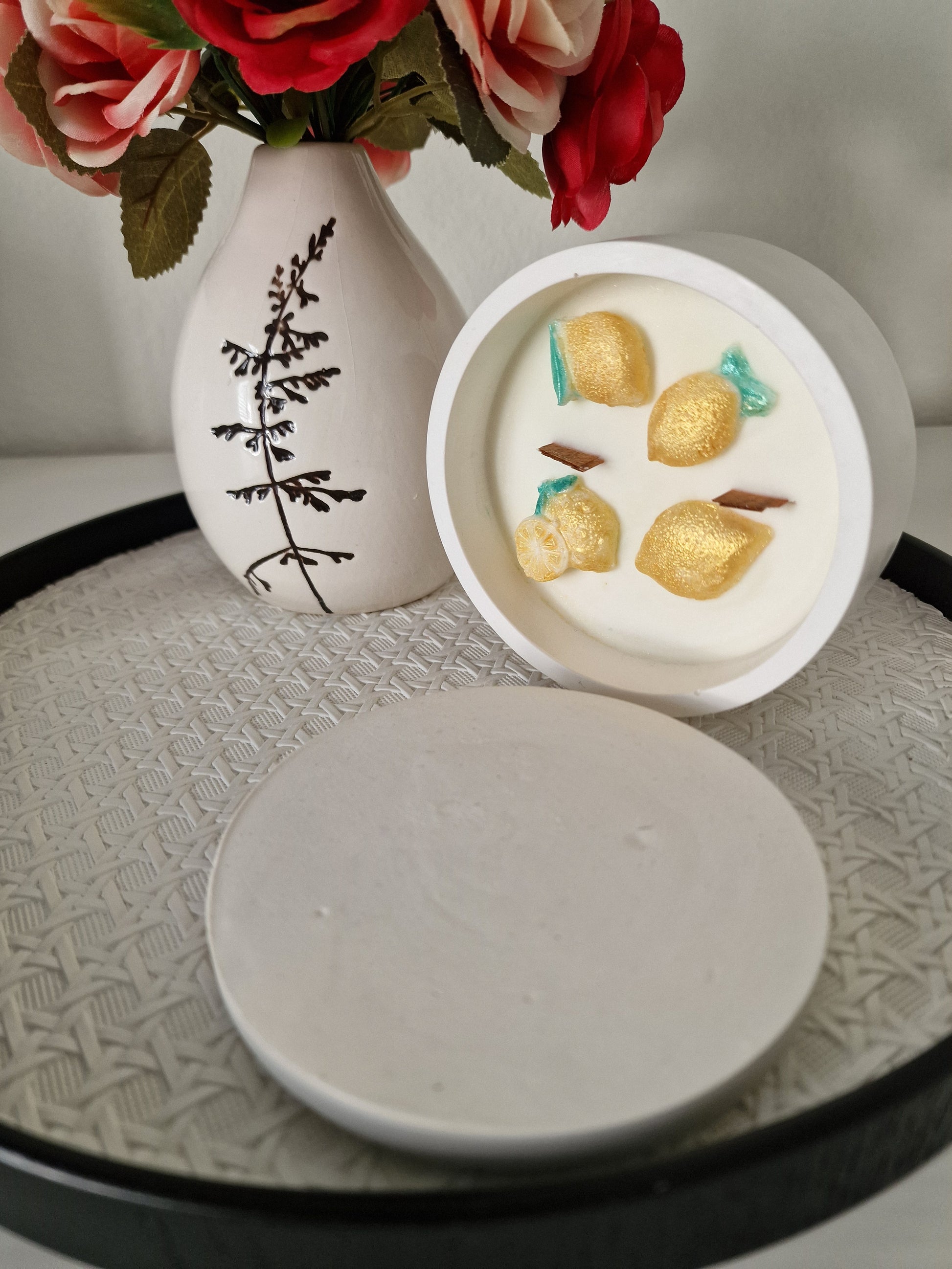 Begeben Sie sich auf eine aromatische Reise mit der Wacholderzitronentraum-Kerze – einer belebenden Komposition aus 100 % Sojawachs, veredelt mit ätherischem Wacholderbeeren- und Zitronenöl. Handgegossen in einem stilvollen, handgefertigten Gipsbehälter vereint diese Kerze Frische, Klarheit und tiefes Wohlbefinden in einem einzigen Duftmoment.