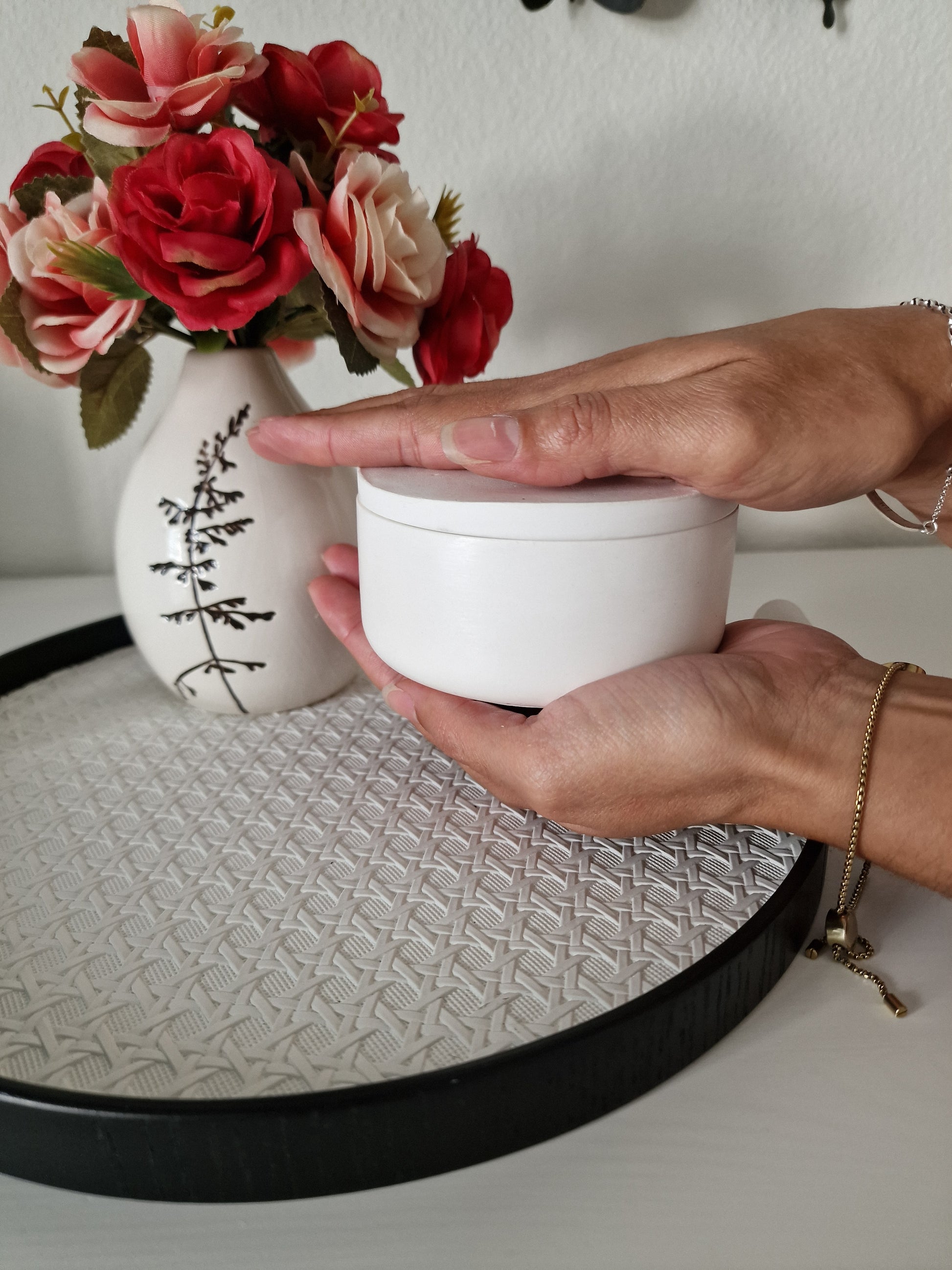 - Handgegossen in handgefertigtem Gipsbehälter