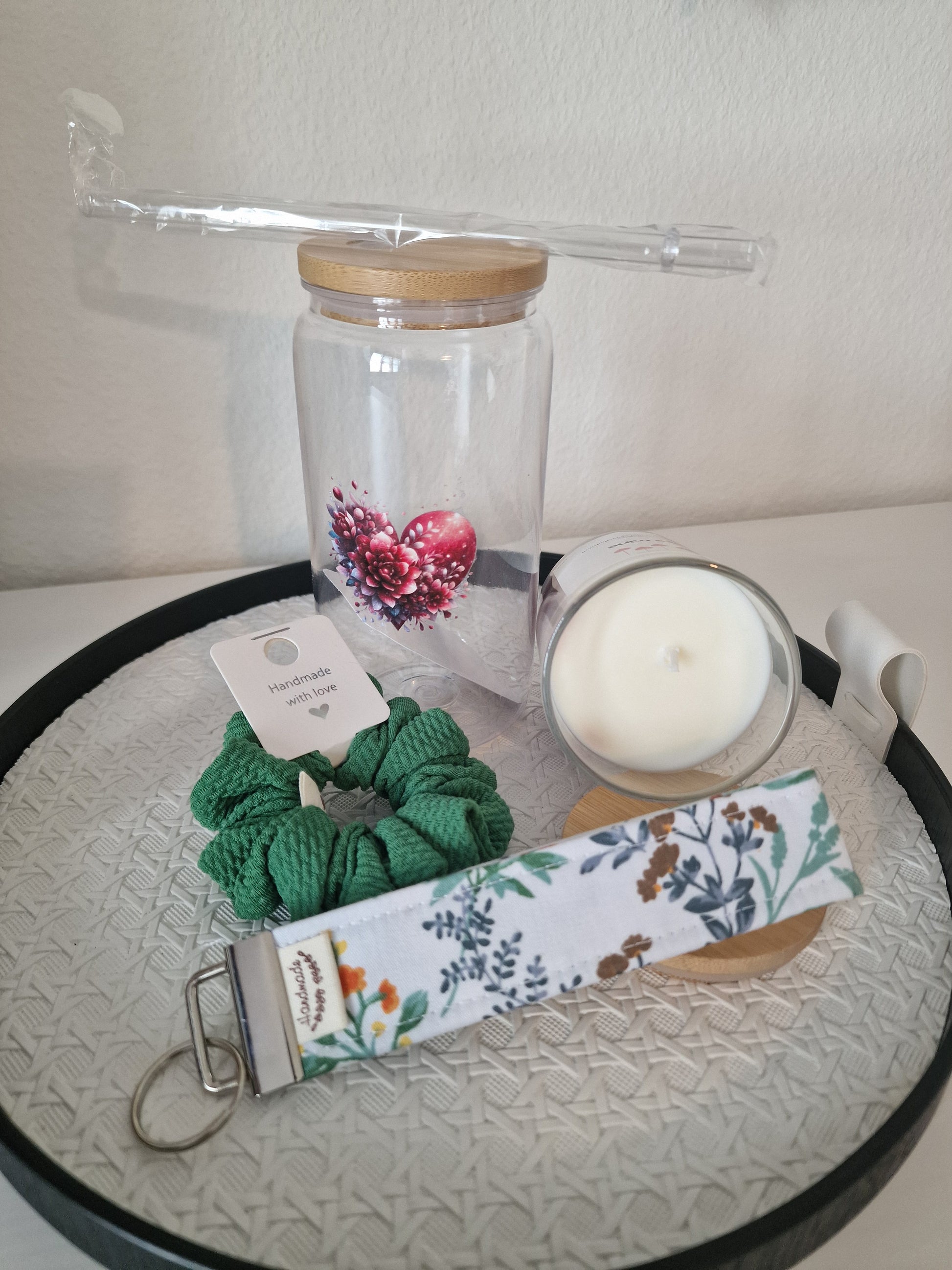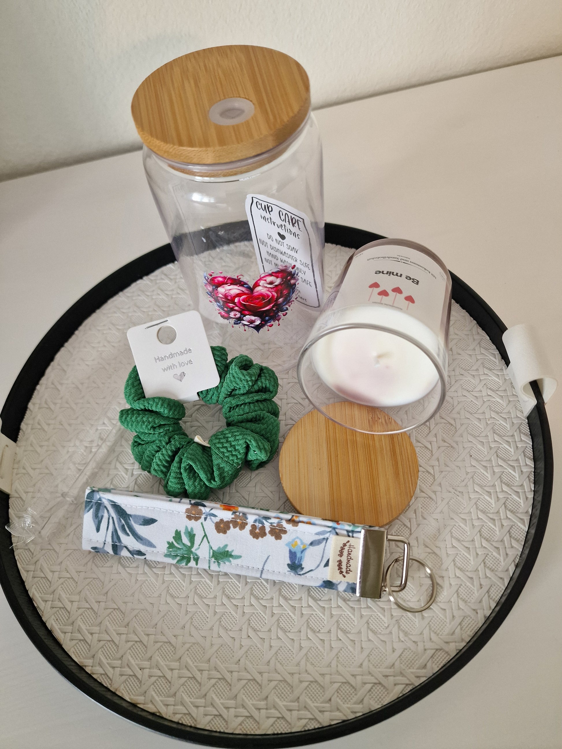 Ein liebevoll kuratiertes Geschenkset, das mit handgemachten Details und einem wohltuenden Duft begeistert. Ideal für Geburtstage, Valentinstag oder einfach, um jemandem ein Lächeln zu schenken.