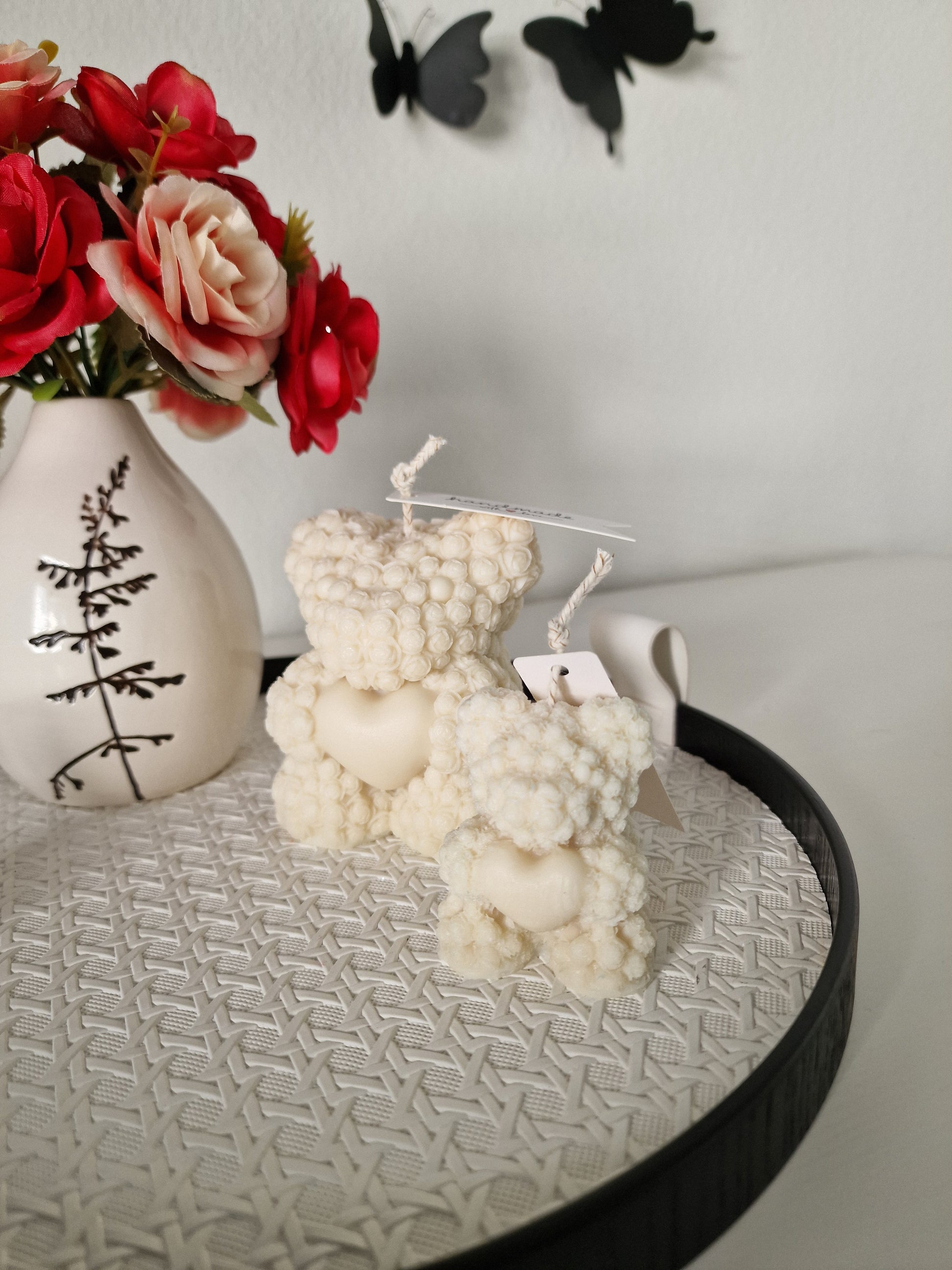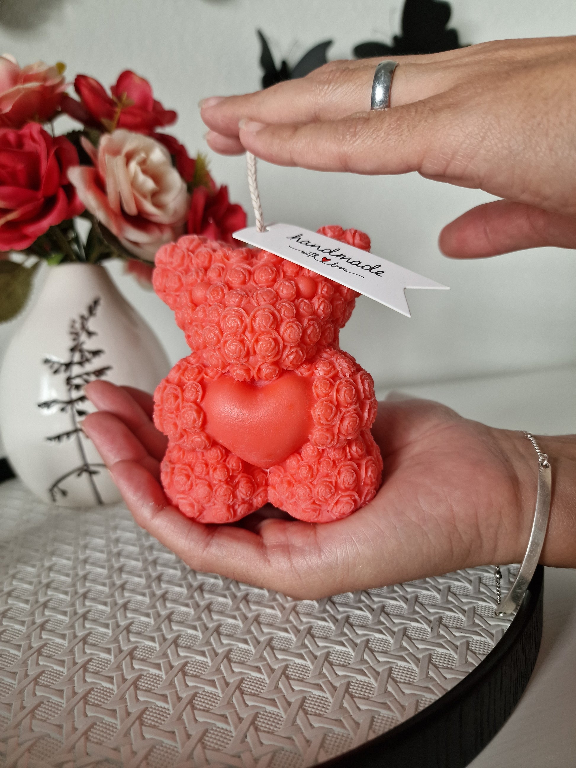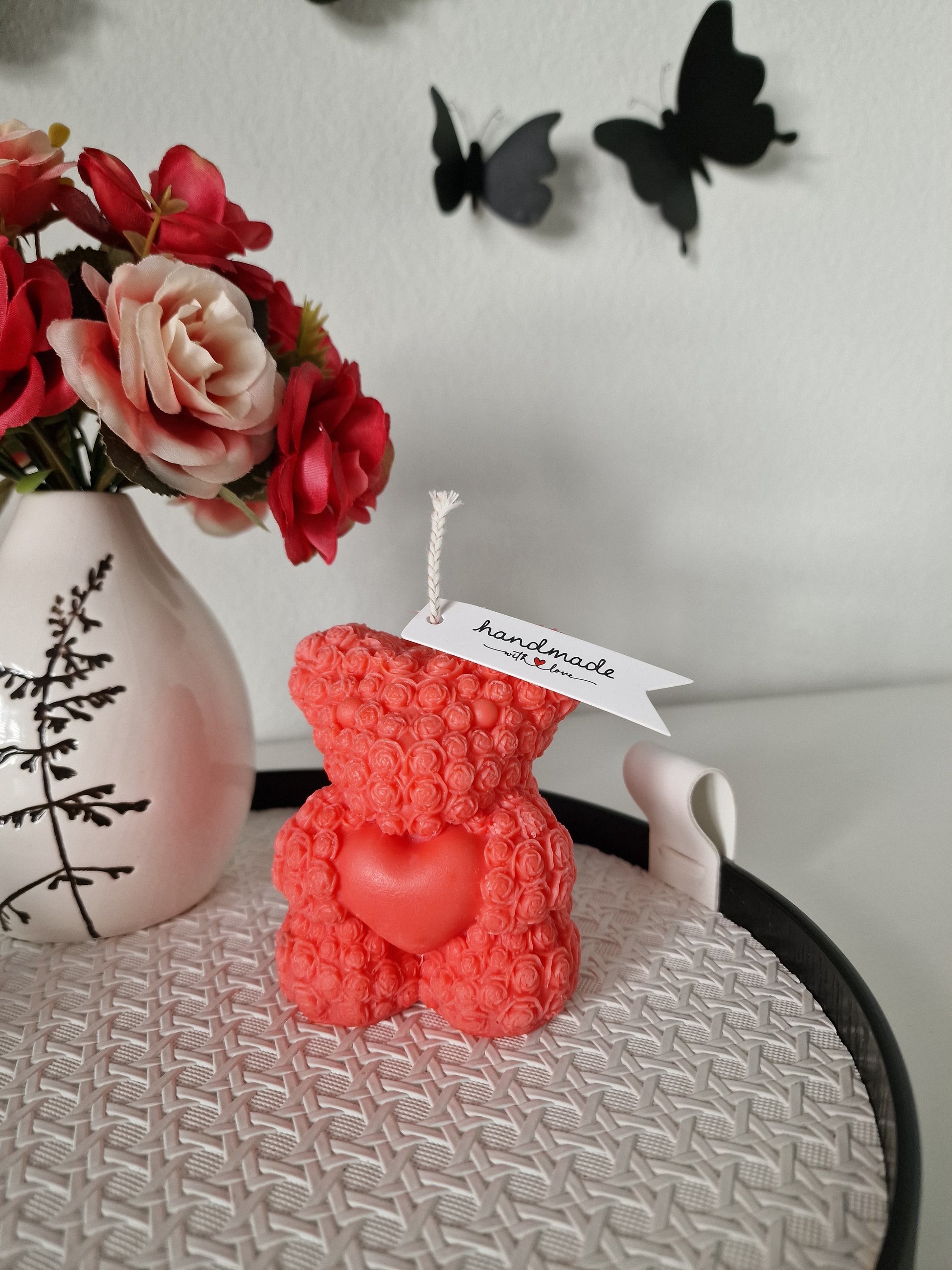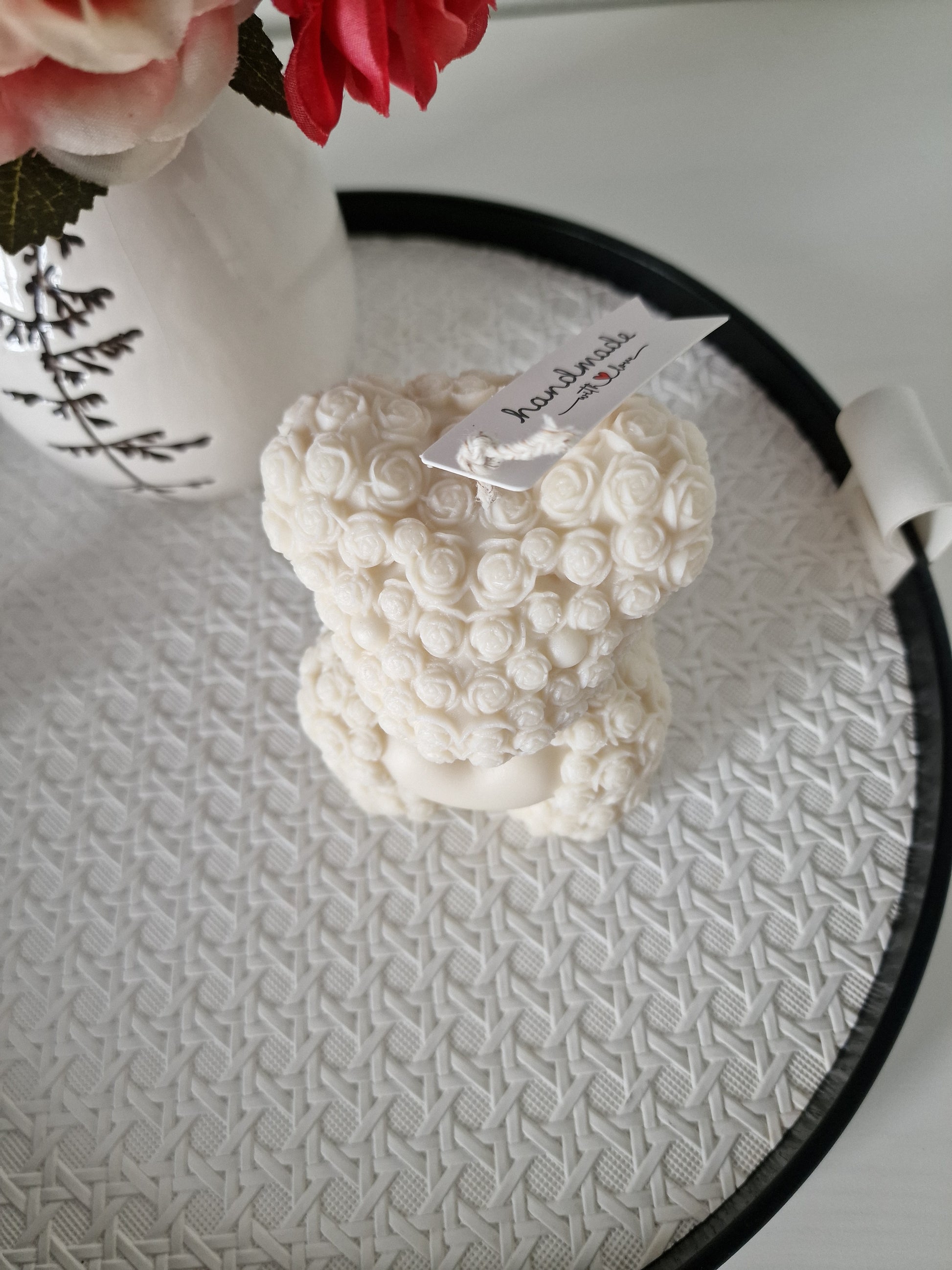 Handgemachte Rosen-Bärenkerze – Aus Soja- & Bienenwachs