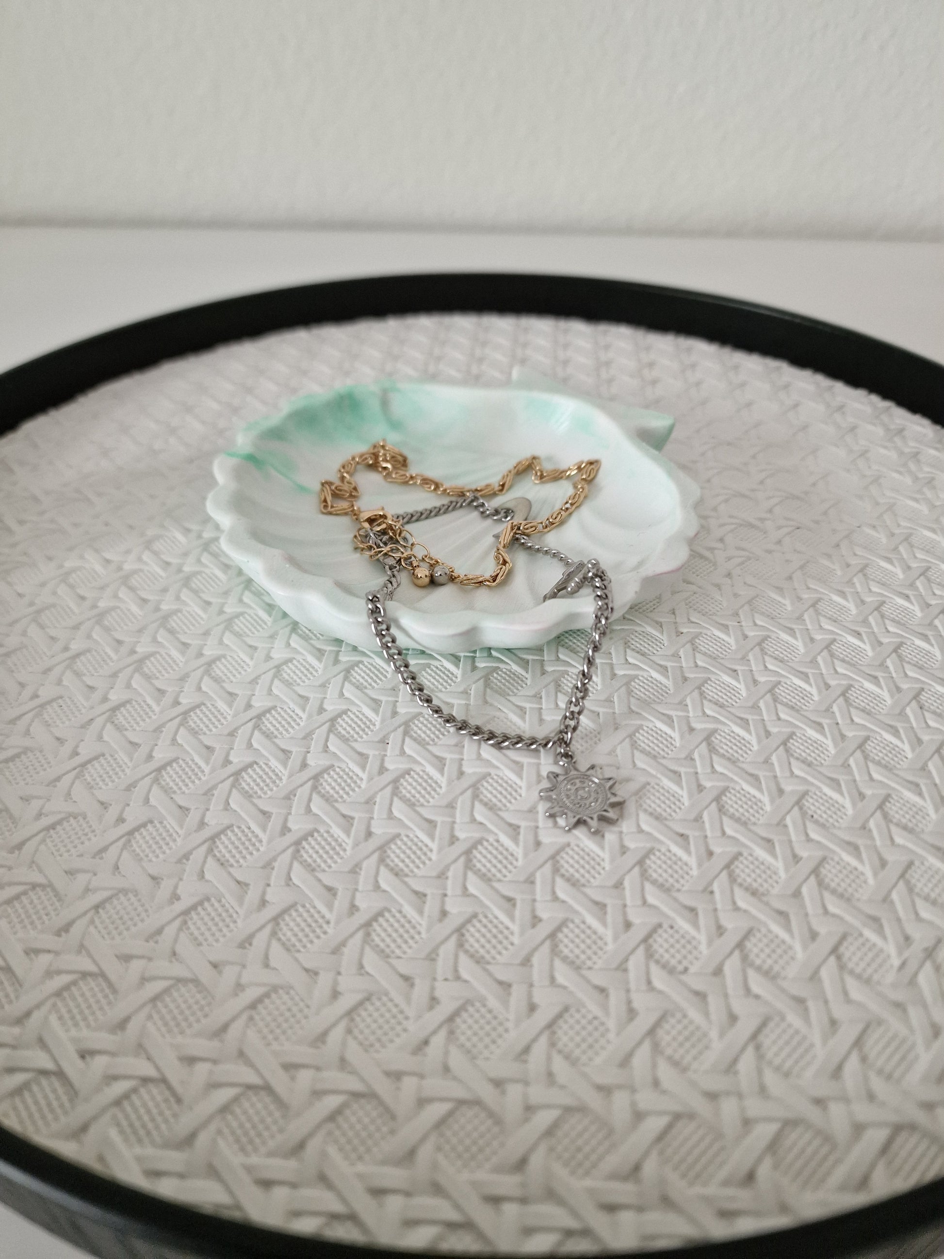 Unsere handgefertigten Muscheluntersetzer aus hochwertigem Gips sind die perfekte Ergänzung für Ihr Zuhause. Sie eignen sich ideal zum sicheren Aufstellen von dekorativen Kerzen oder von Kerzen ohne eigenen Behälter. Darüber hinaus sind sie vielseitig einsetzbar – zum Beispiel als stilvolle Seifenablage im Badezimmer oder als dekoratives Element auf Regalen und Tischen. Auf Wunsch können sie auch zur eleganten Präsentation von Schmuck verwendet werden.