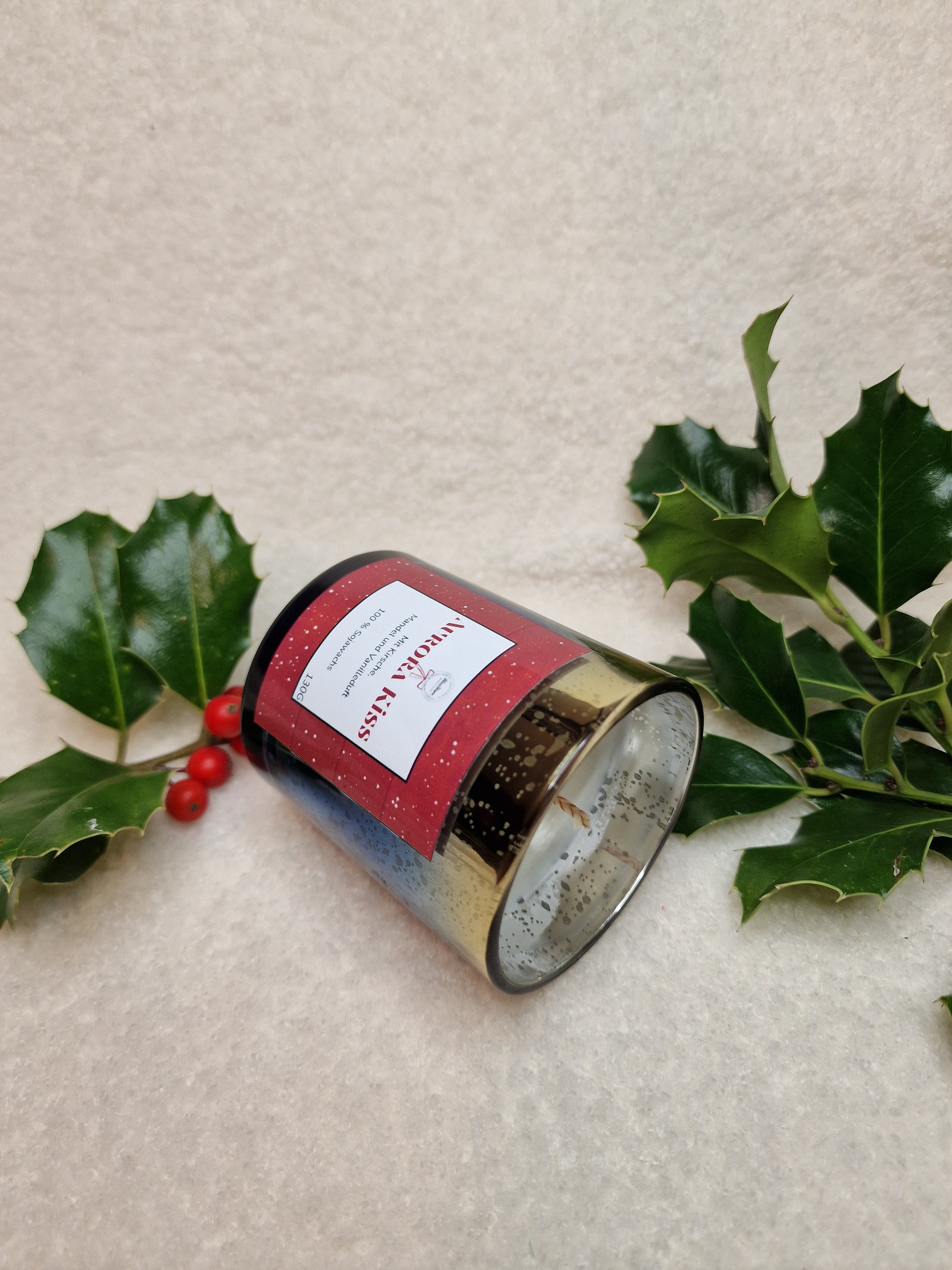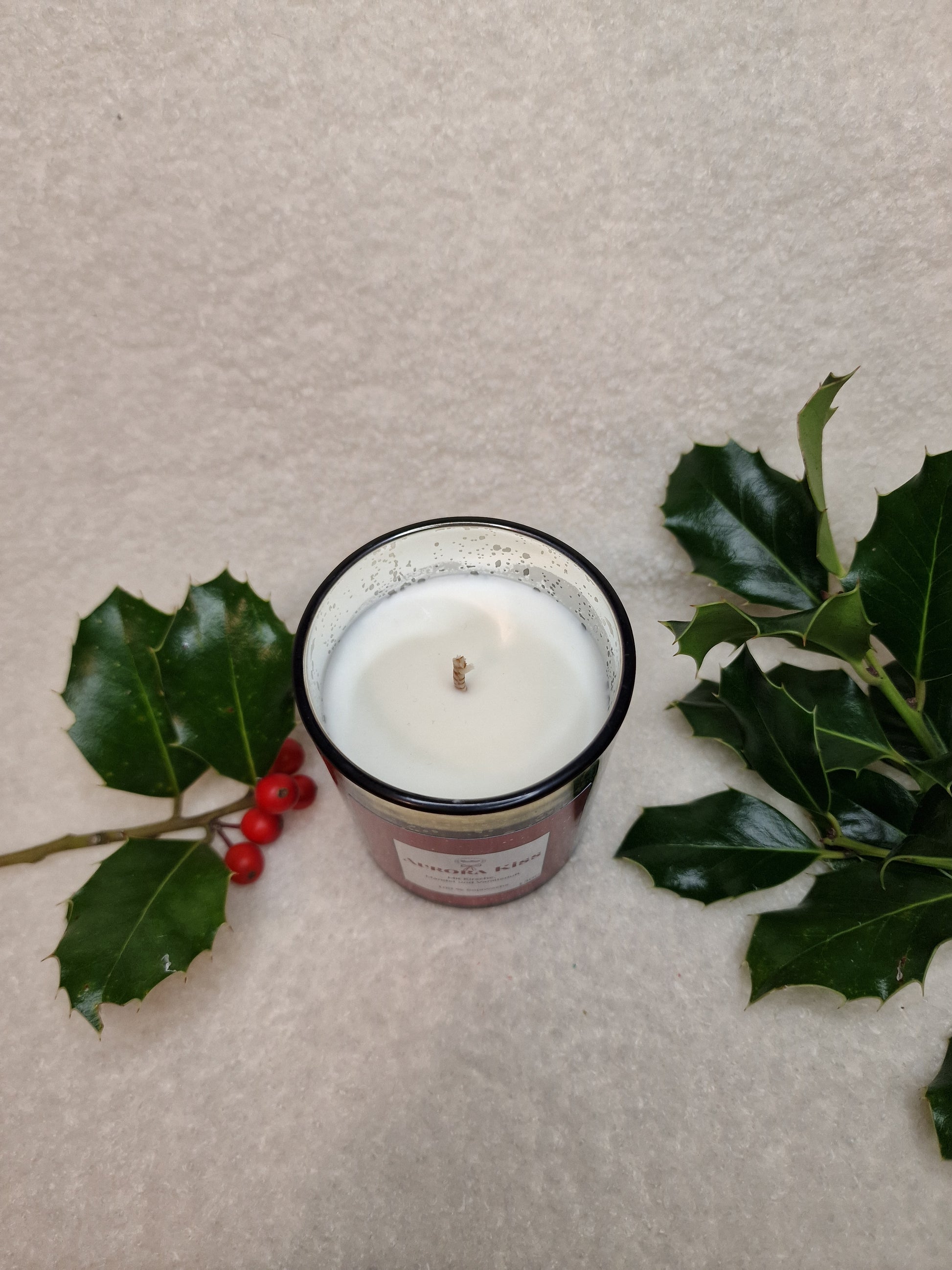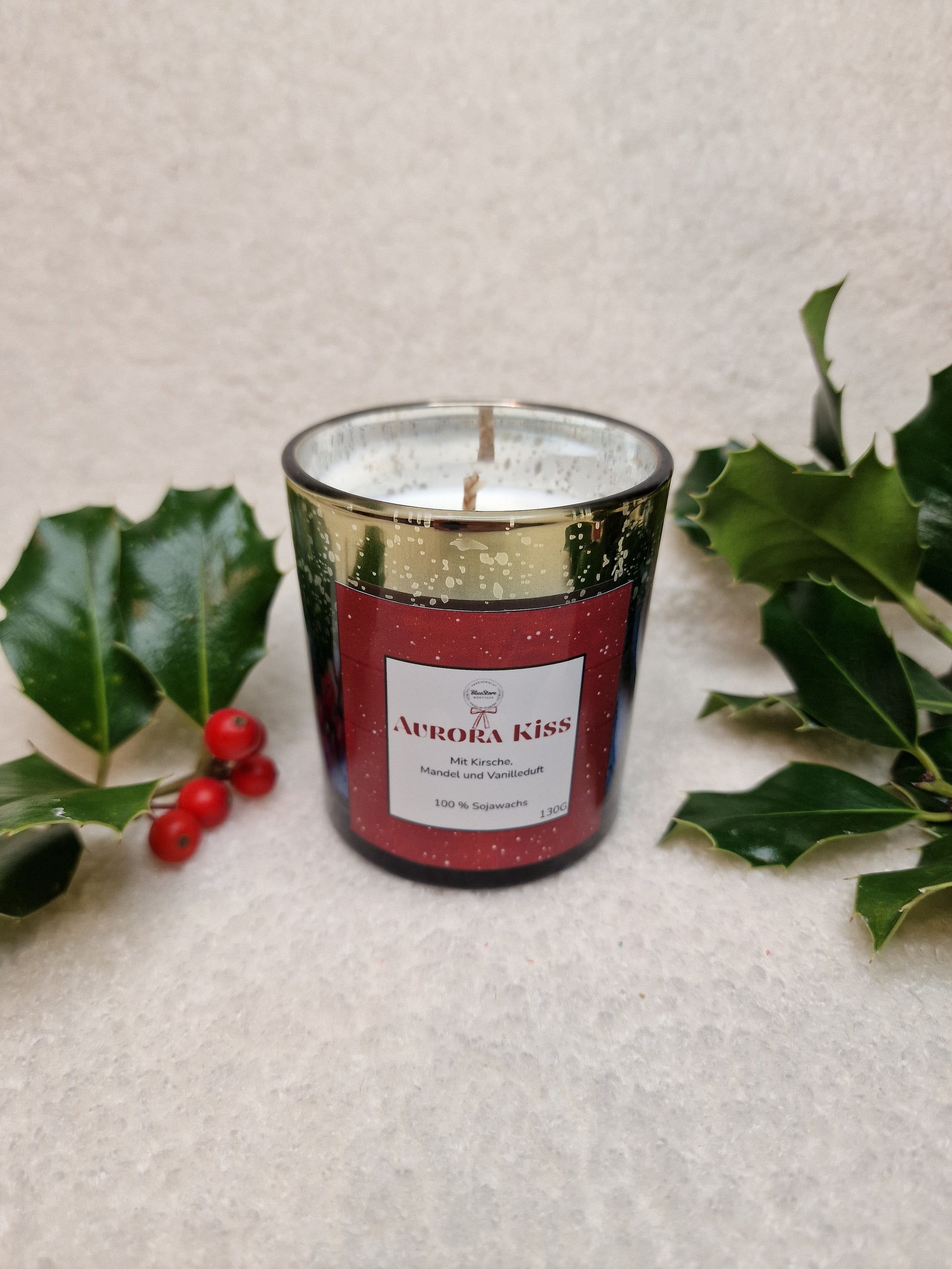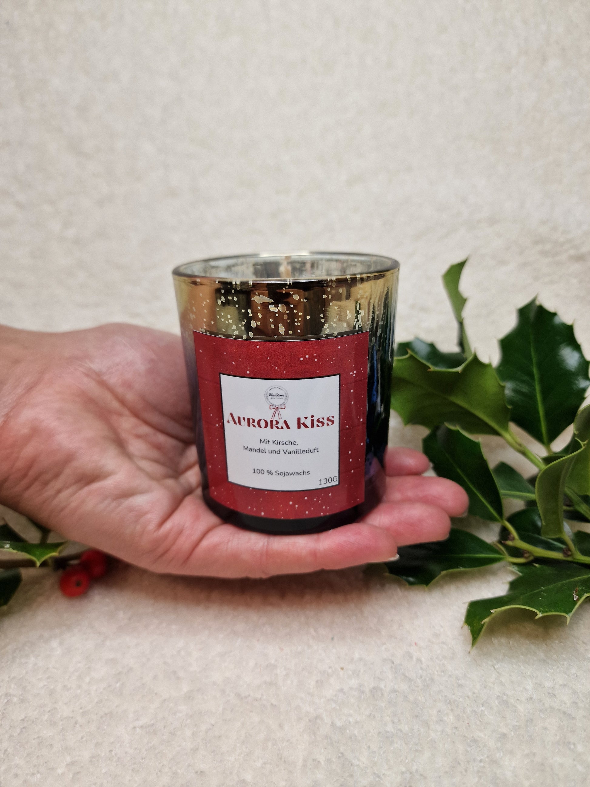 Die Aurora Kiss Kerze verführt die Sinne mit einer harmonischen Mischung aus Kirsche, Vanille und Mandeln. Ihr süßer, warm-nussiger Duft schafft eine festliche, luxuriöse Atmosphäre – perfekt für gemütliche Winterabende, romantische Momente oder als edles Geschenk.