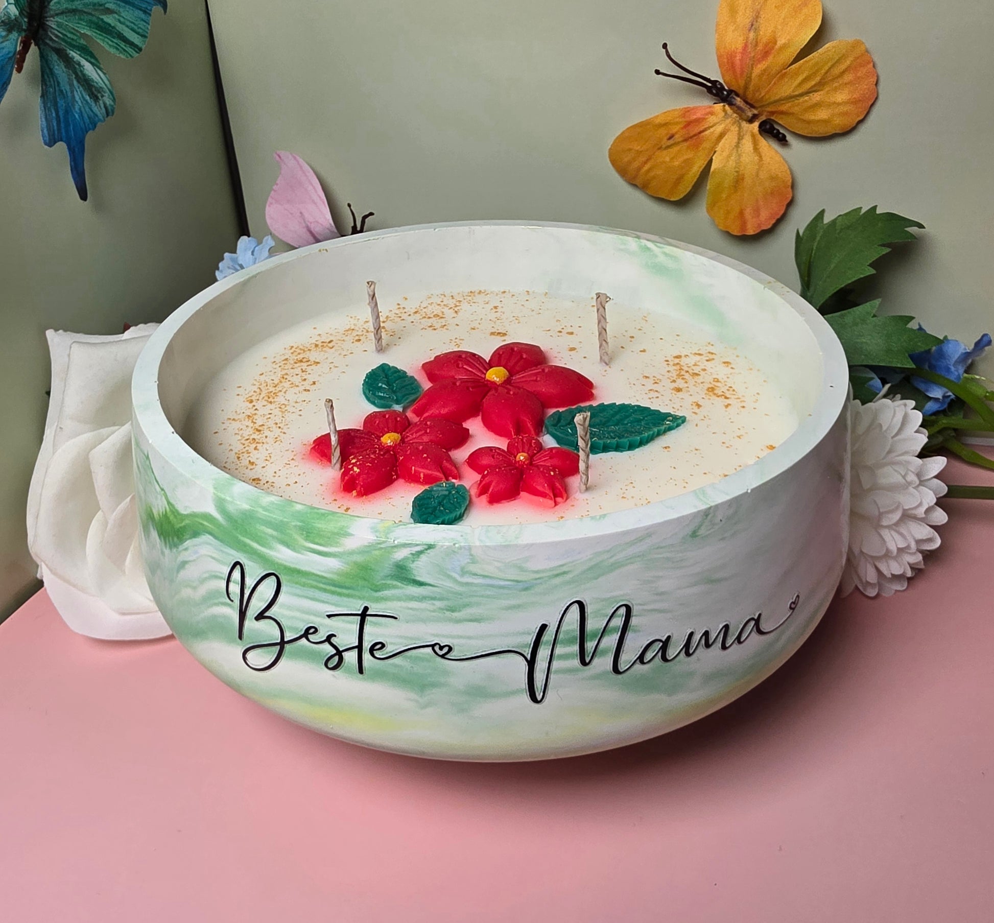Die Beste Mama Duftkerze ist eine luxuriöse Duftkerze, die Frische, Süße und florale Eleganz miteinander vereint – perfekt als besonderes Geschenk für die wichtigste Person im Leben.