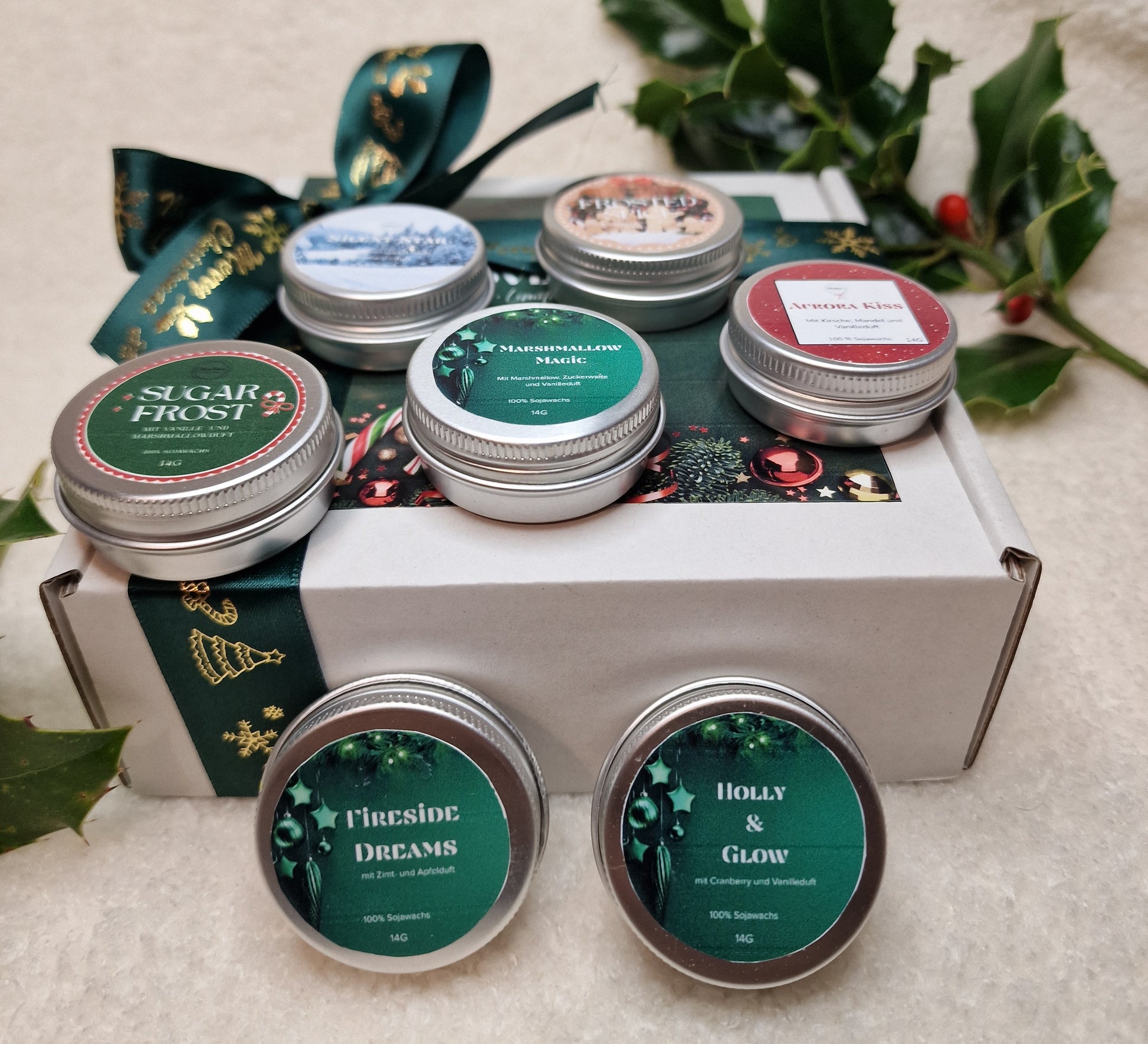 - Duftvariationen: Jede Kerze mit einem einzigartigen Weihnachtsaroma (z. B. Orange & Zimt, Cranberry & Vanille, Lebkuchen u.v.m.)