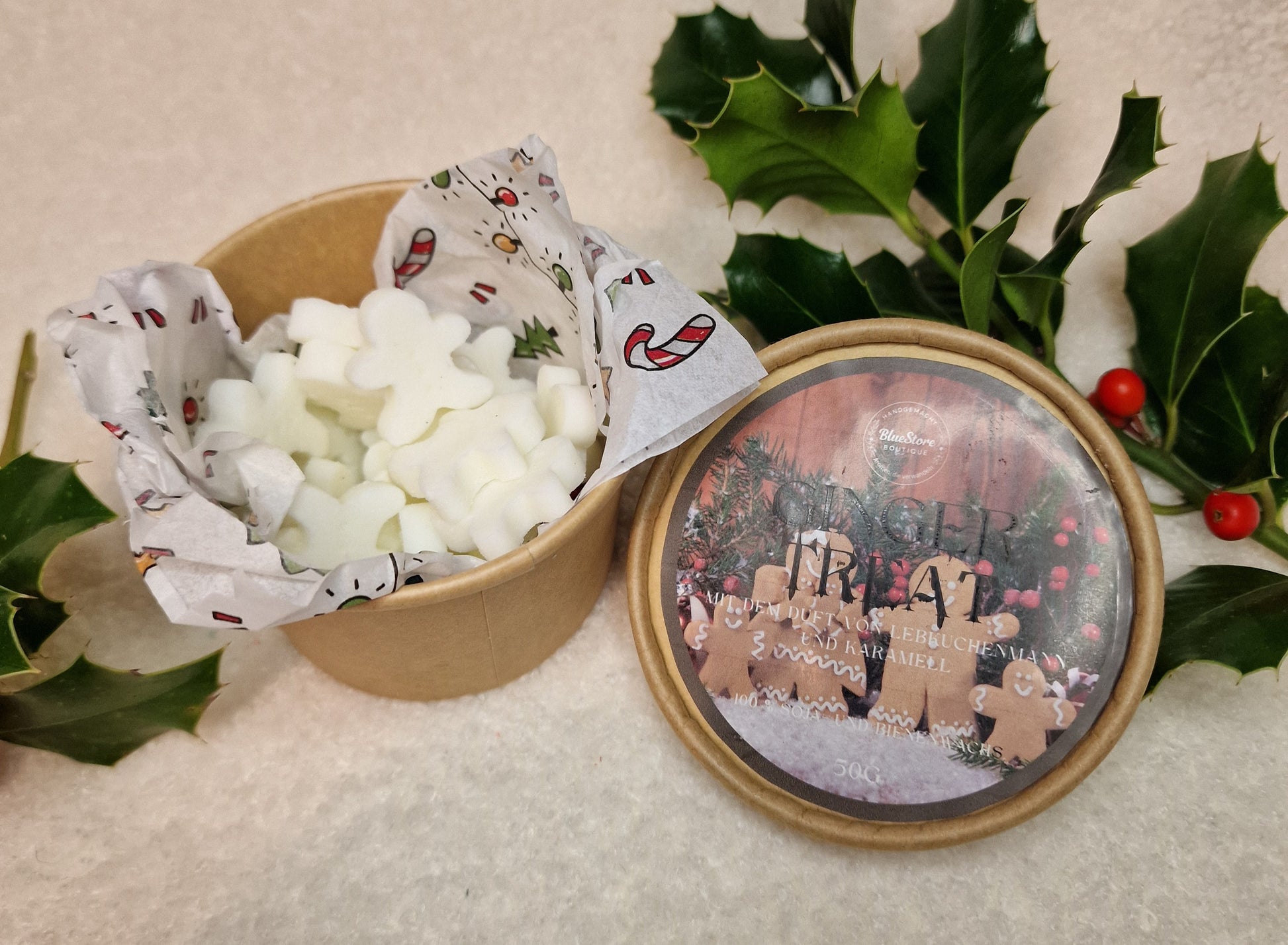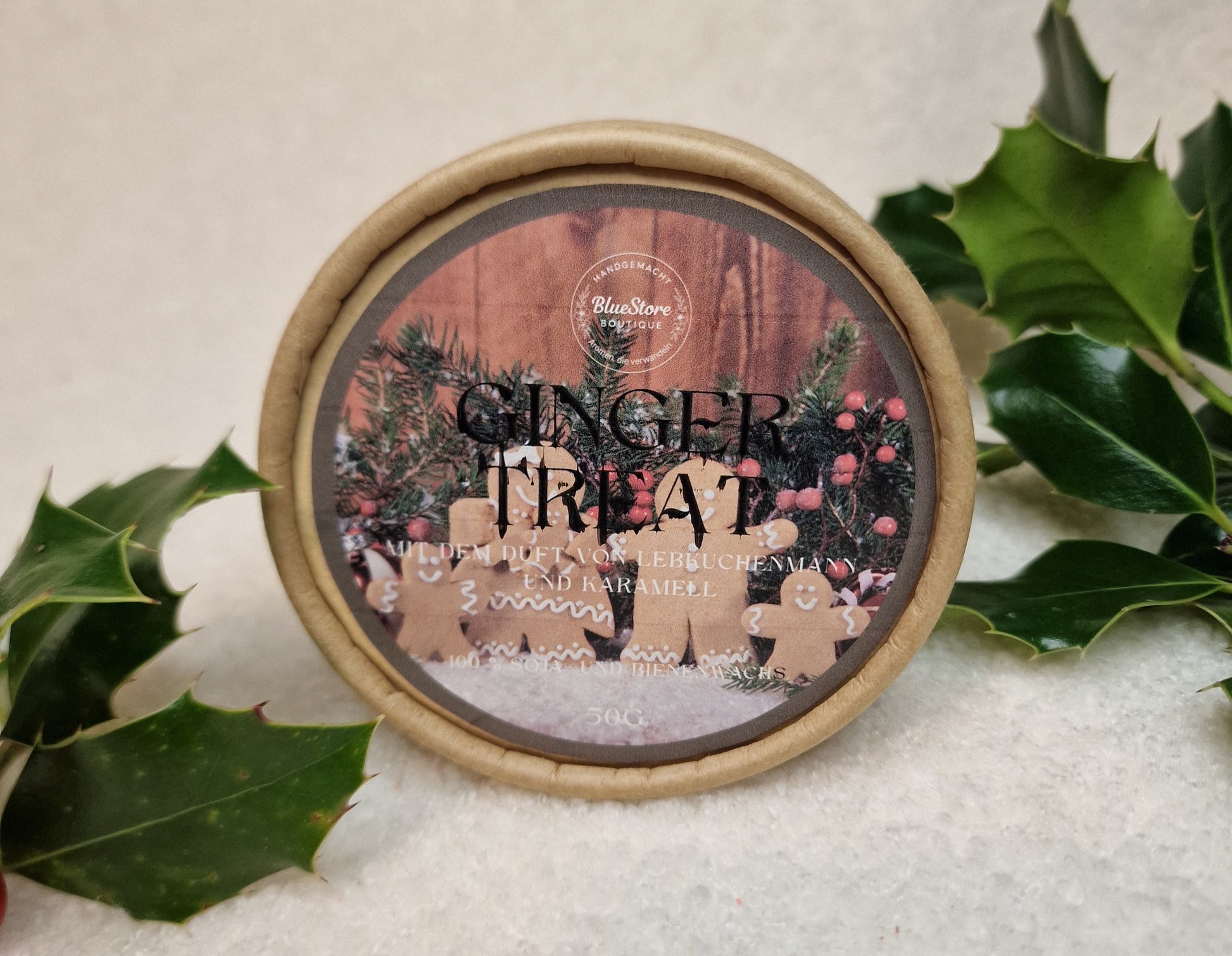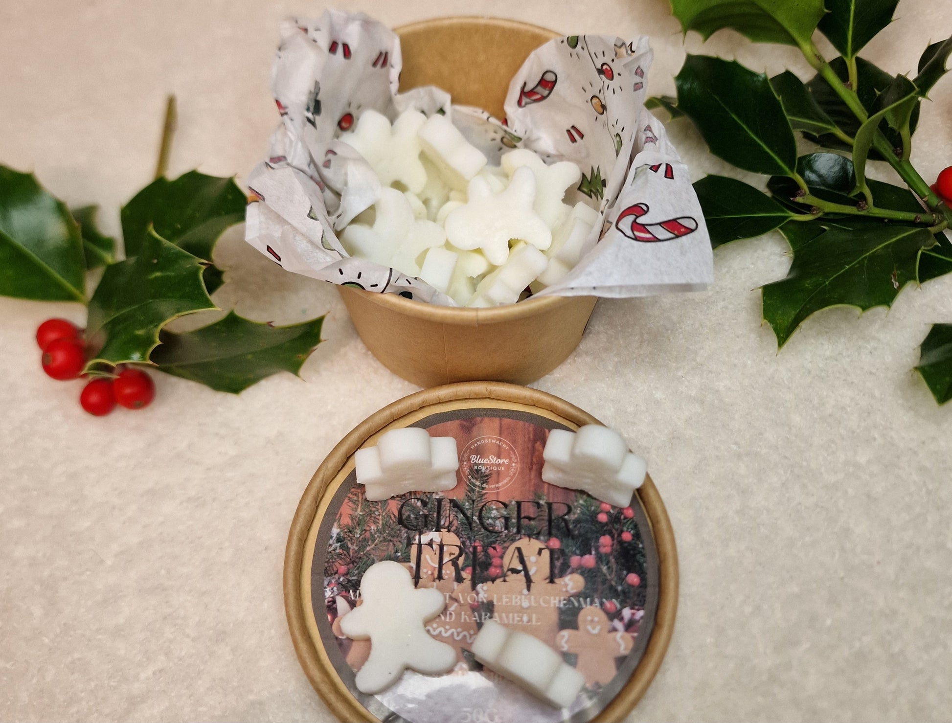 Erleben Sie den warmen, süßen Duft unseres Ginger Treat Waxmelts. Handgefertigt aus Sojawachs & Bienenwachs, vermittelt er Gemütlichkeit und festliche Weihnachtsstimmung.