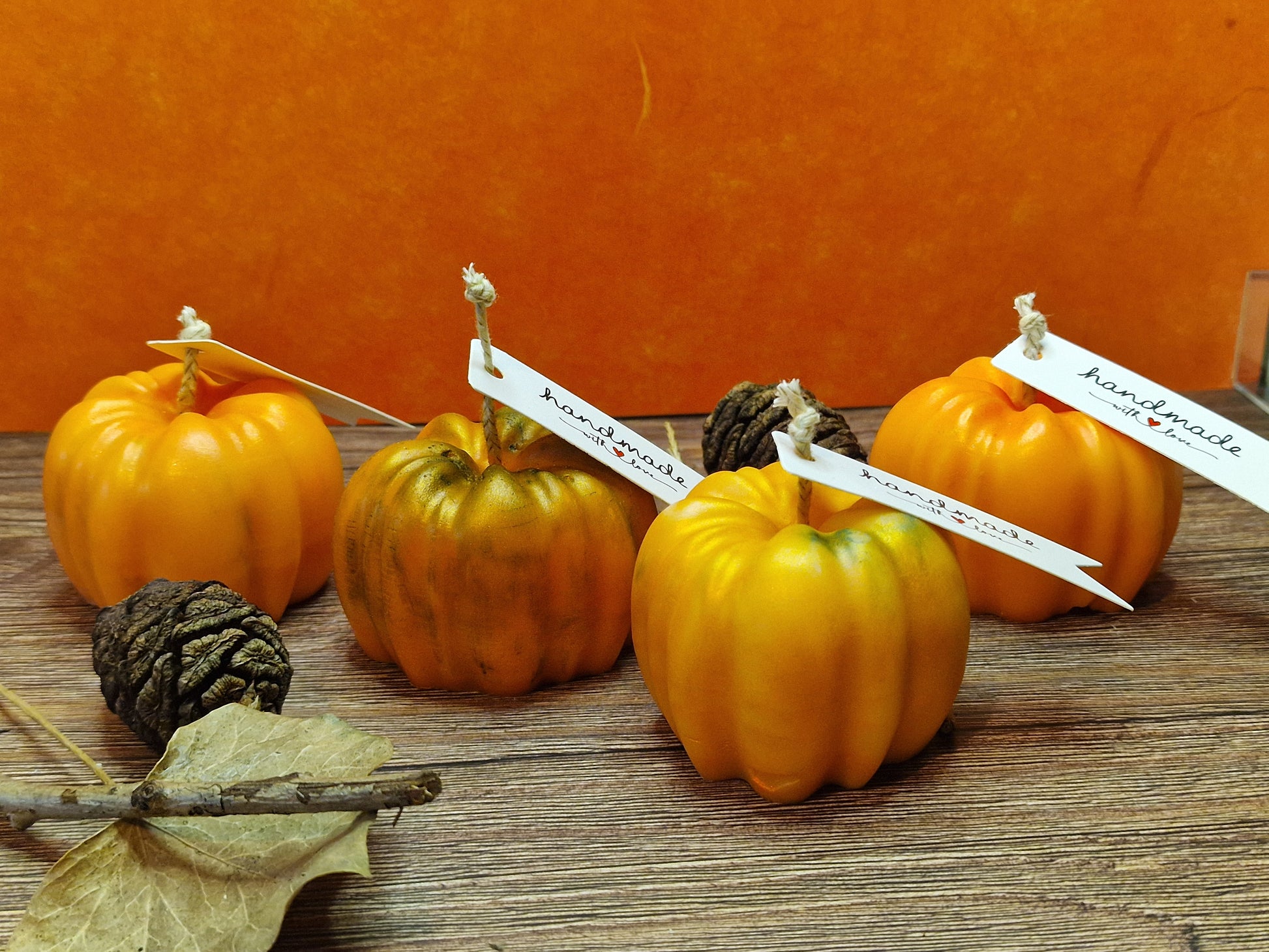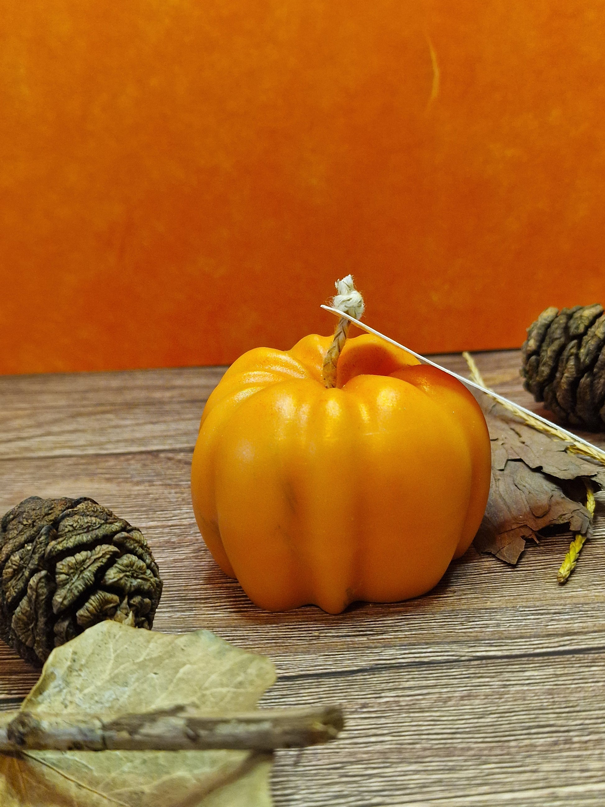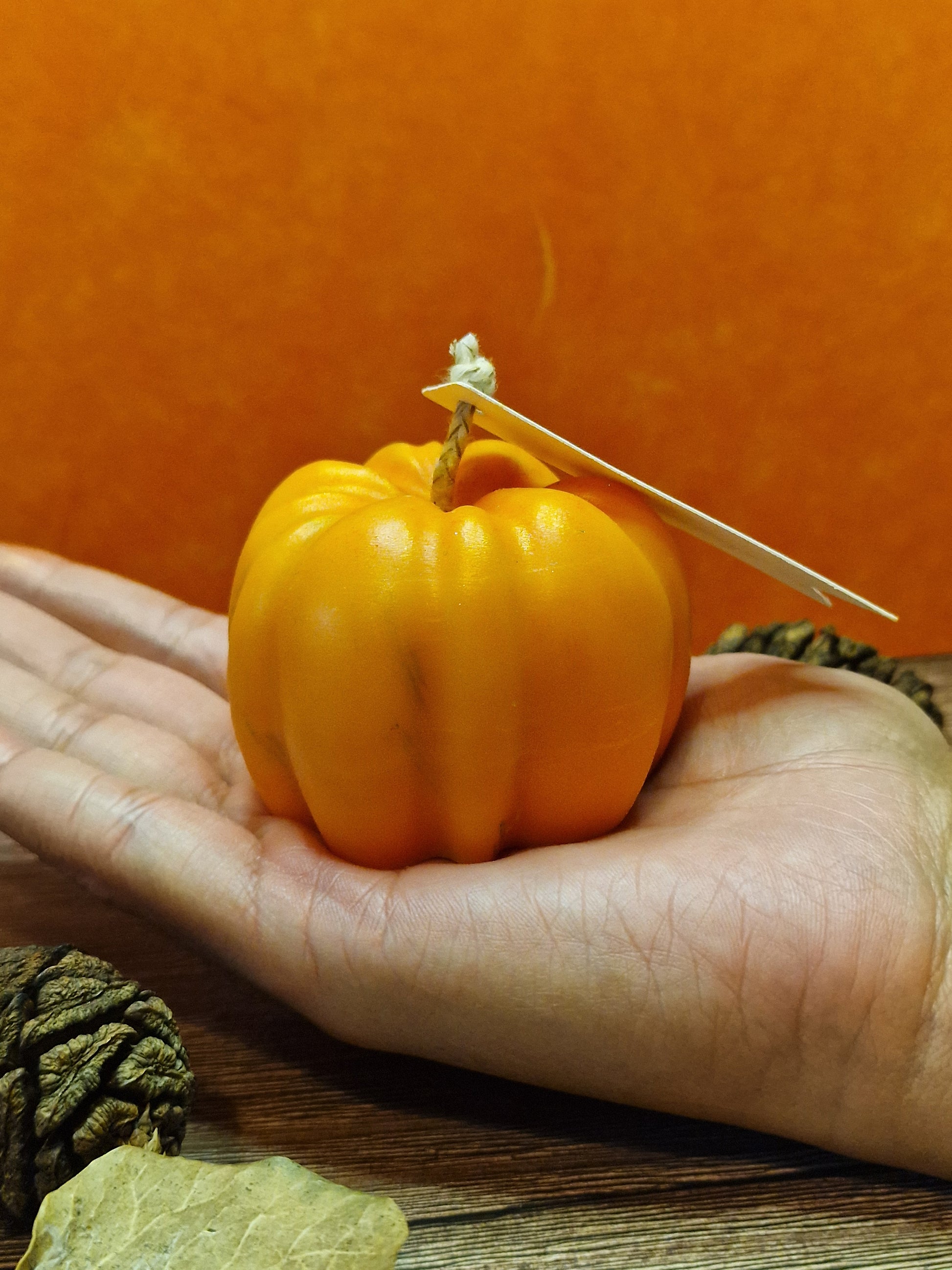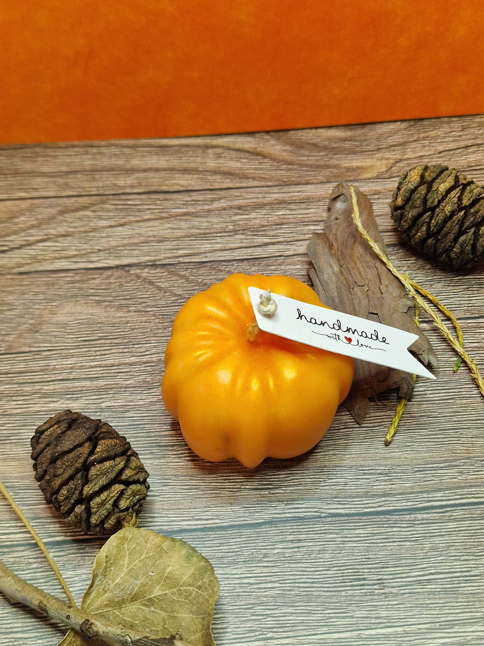 Bringen Sie herbstliche Wärme in Ihr Zuhause mit unserer Kürbis-Kerze. Jede Kerze wird handgefertigt aus einer edlen Mischung aus Sojawachs und Bienenwachs.
