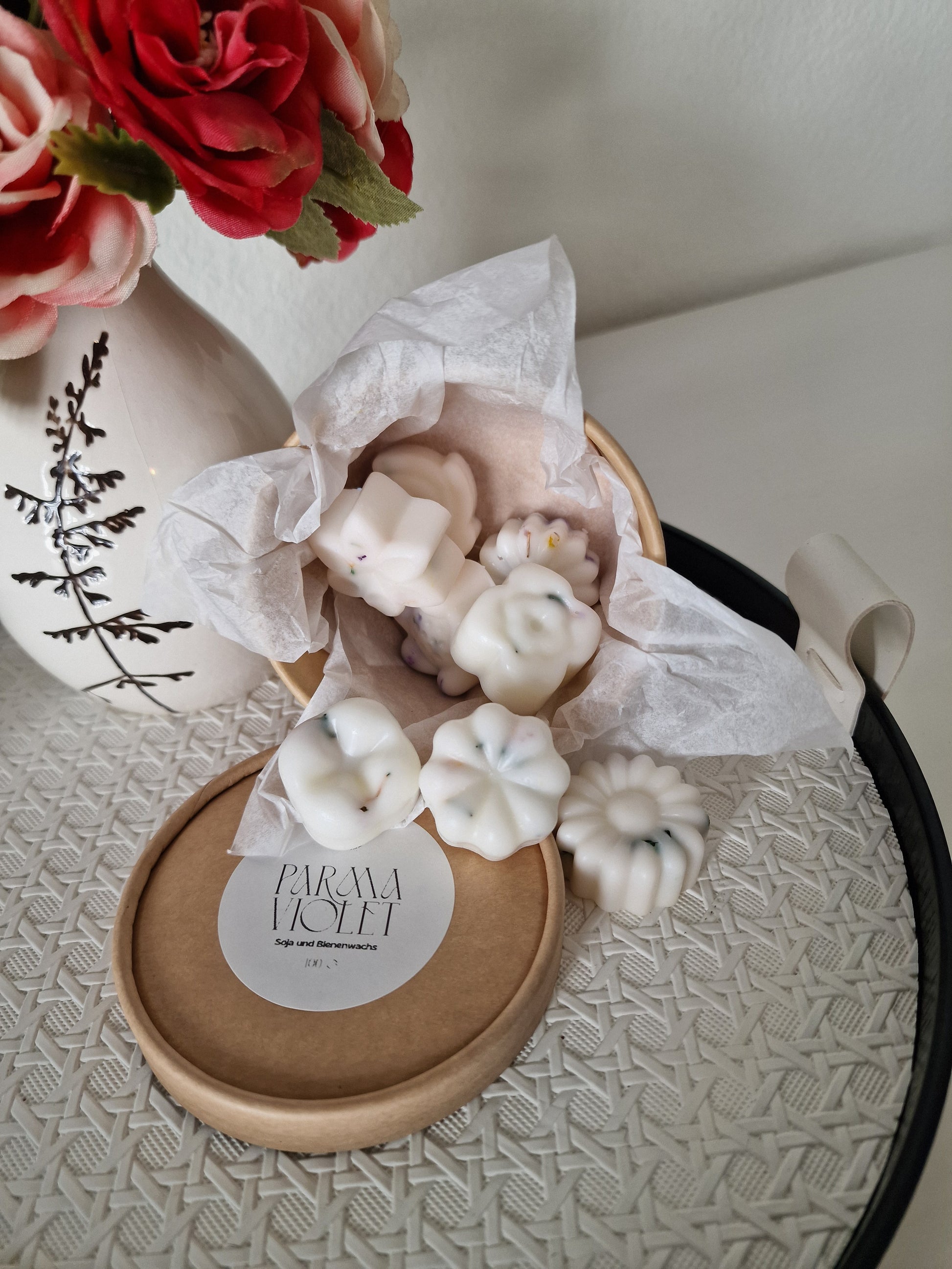 Genießen Sie die zarte Aromatherapie unserer handgefertigten Wachsschmelzen aus Soja- und Bienenwachs, veredelt mit ätherischem Parmaveilchenöl. Der natürliche, violette Duft des Parmaveilchens ist süß, mild und leicht pudrig – ein Duft, der besonders die feminine Seele anspricht.