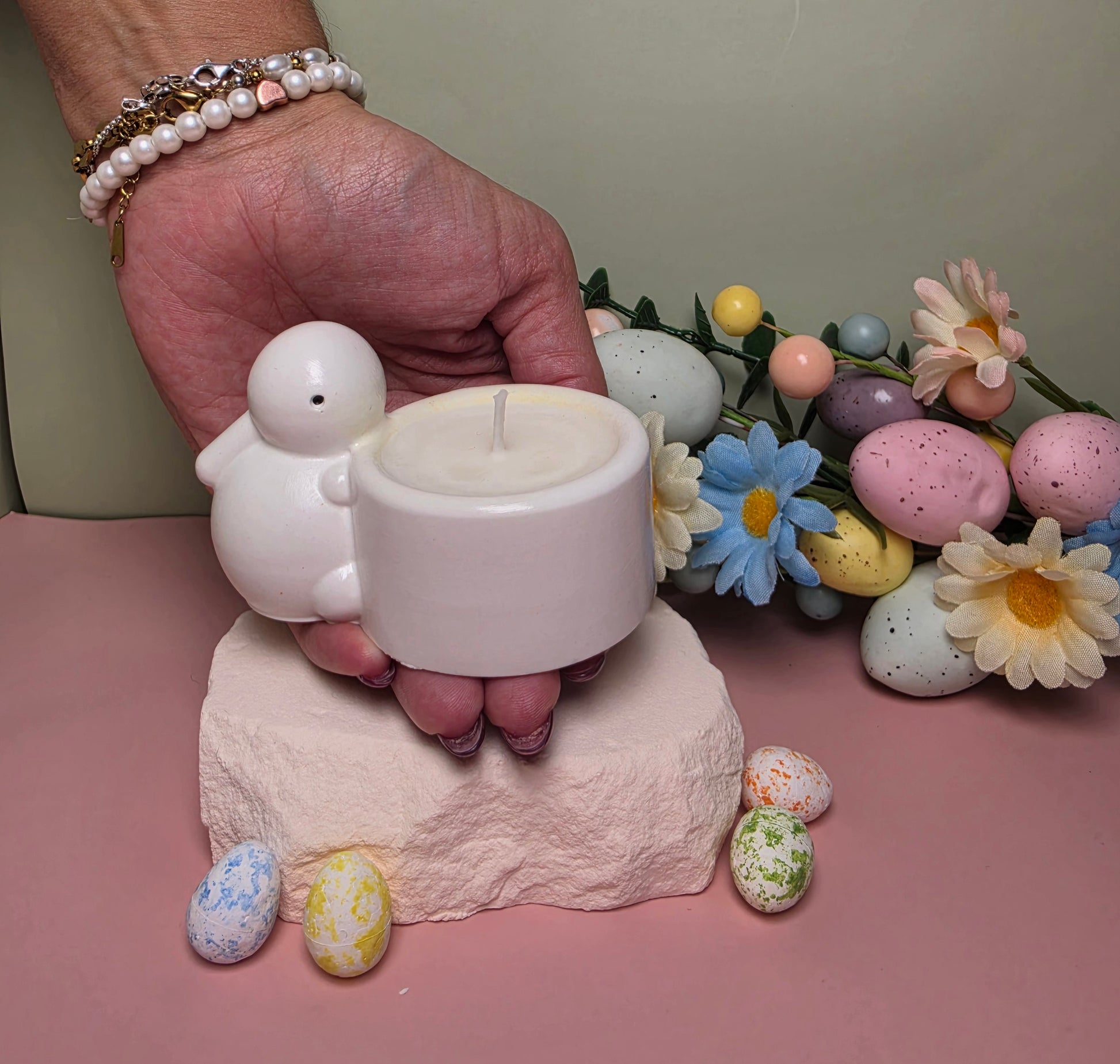 Diese harmonische Duftkomposition schafft eine frische und zugleich beruhigende Atmosphäre – perfekt für Frühlingsmomente oder als besondere Dekoration zur Osterzeit.