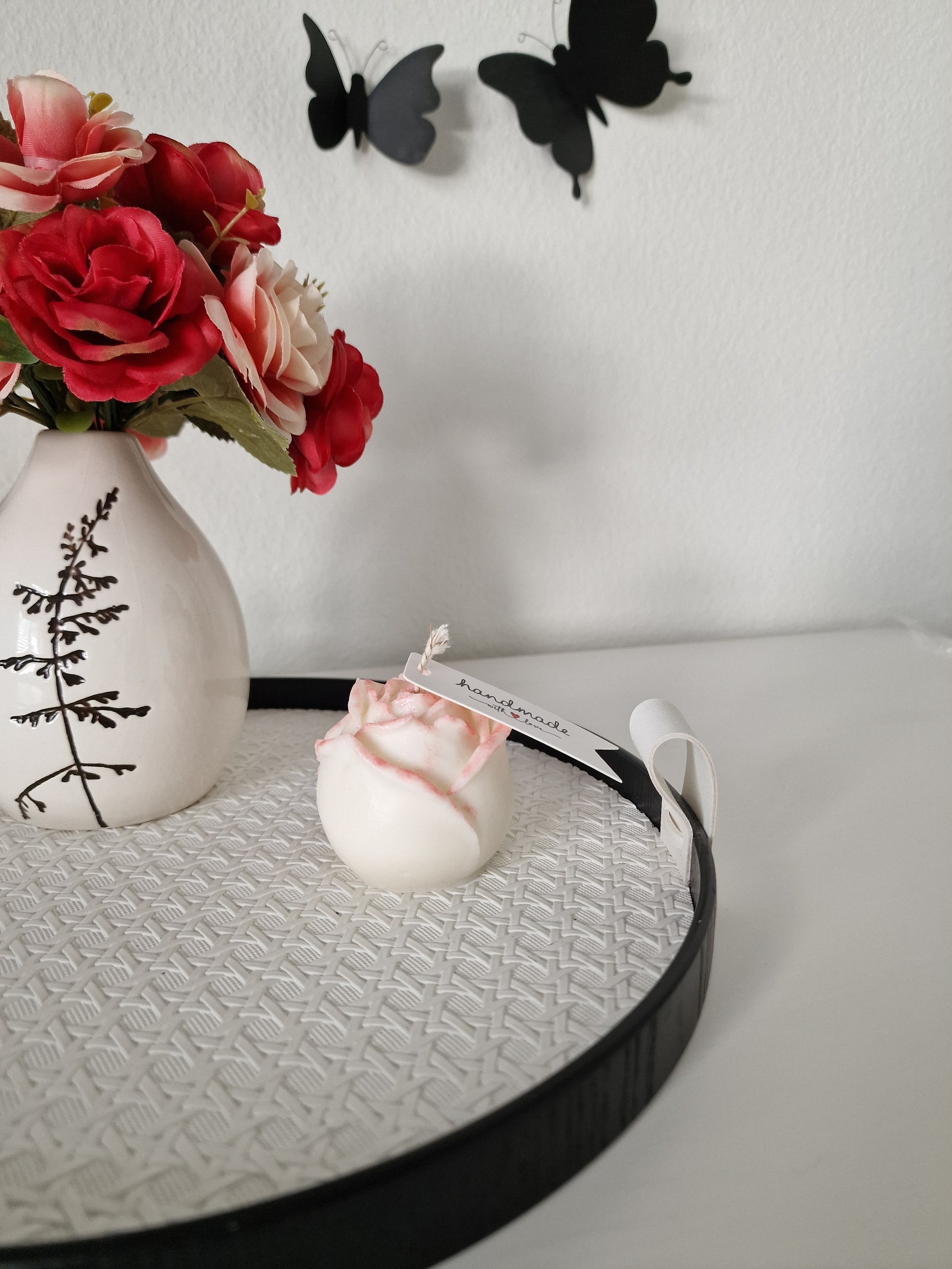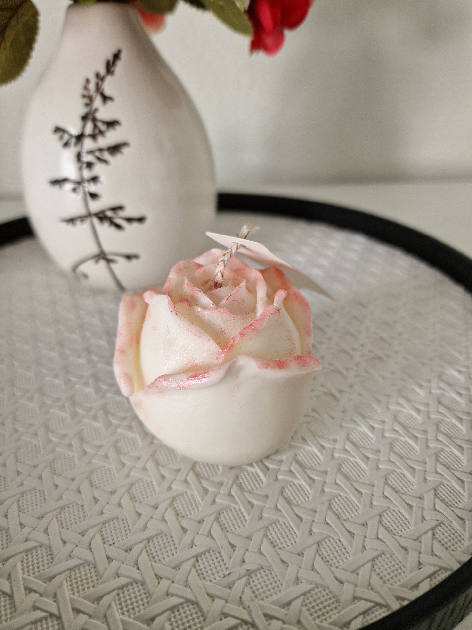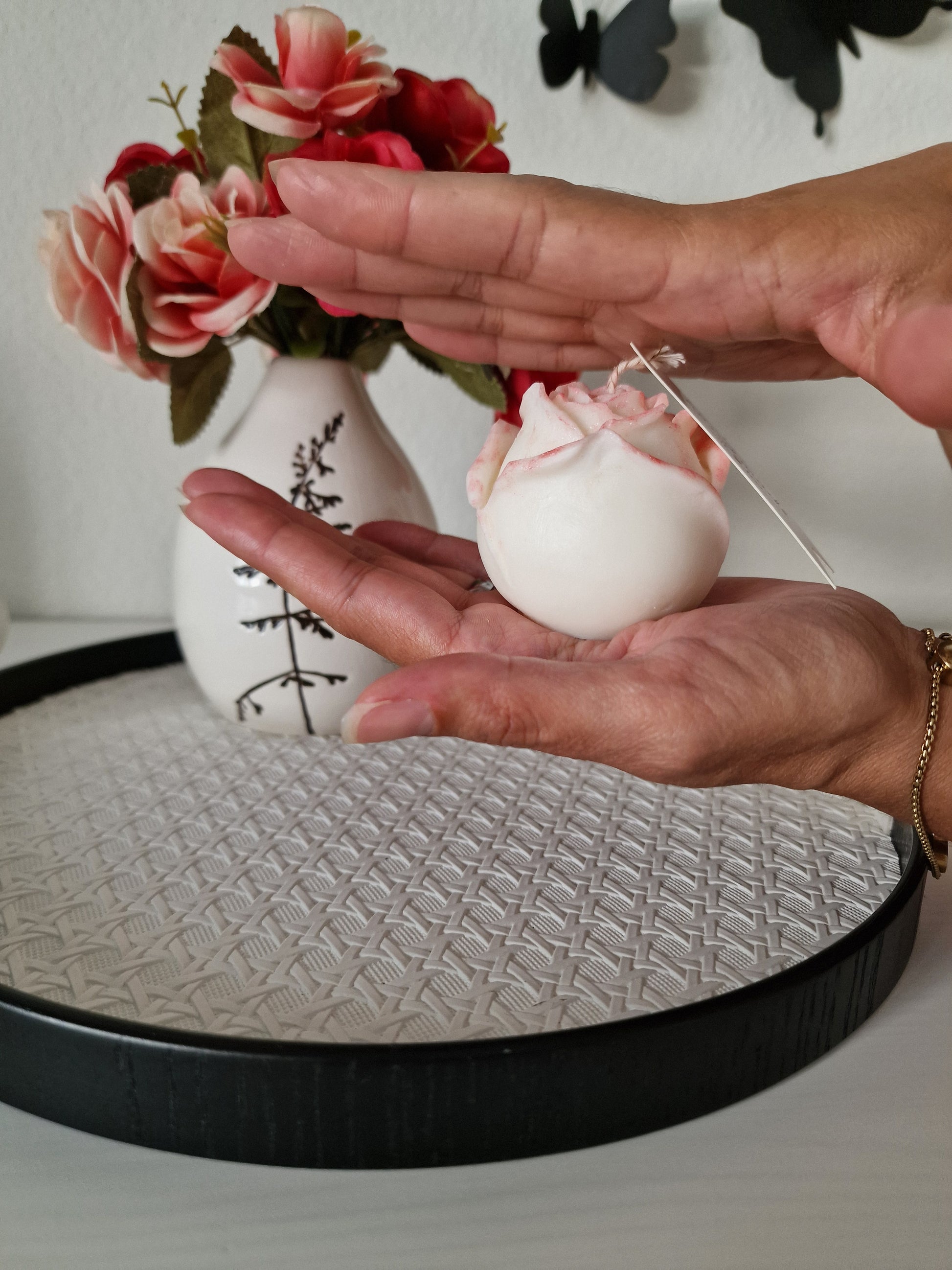 Entdecke Lichtertraum, die Duftkerze in kunstvoller Rosenform, handgegossen aus einer feinen Mischung aus Sojawachs und Bienenwachs. Diese Kerze vereint elegantes Design mit betörenden Düften – perfekt als Geschenk oder stilvolle Deko für dein Zuhause.