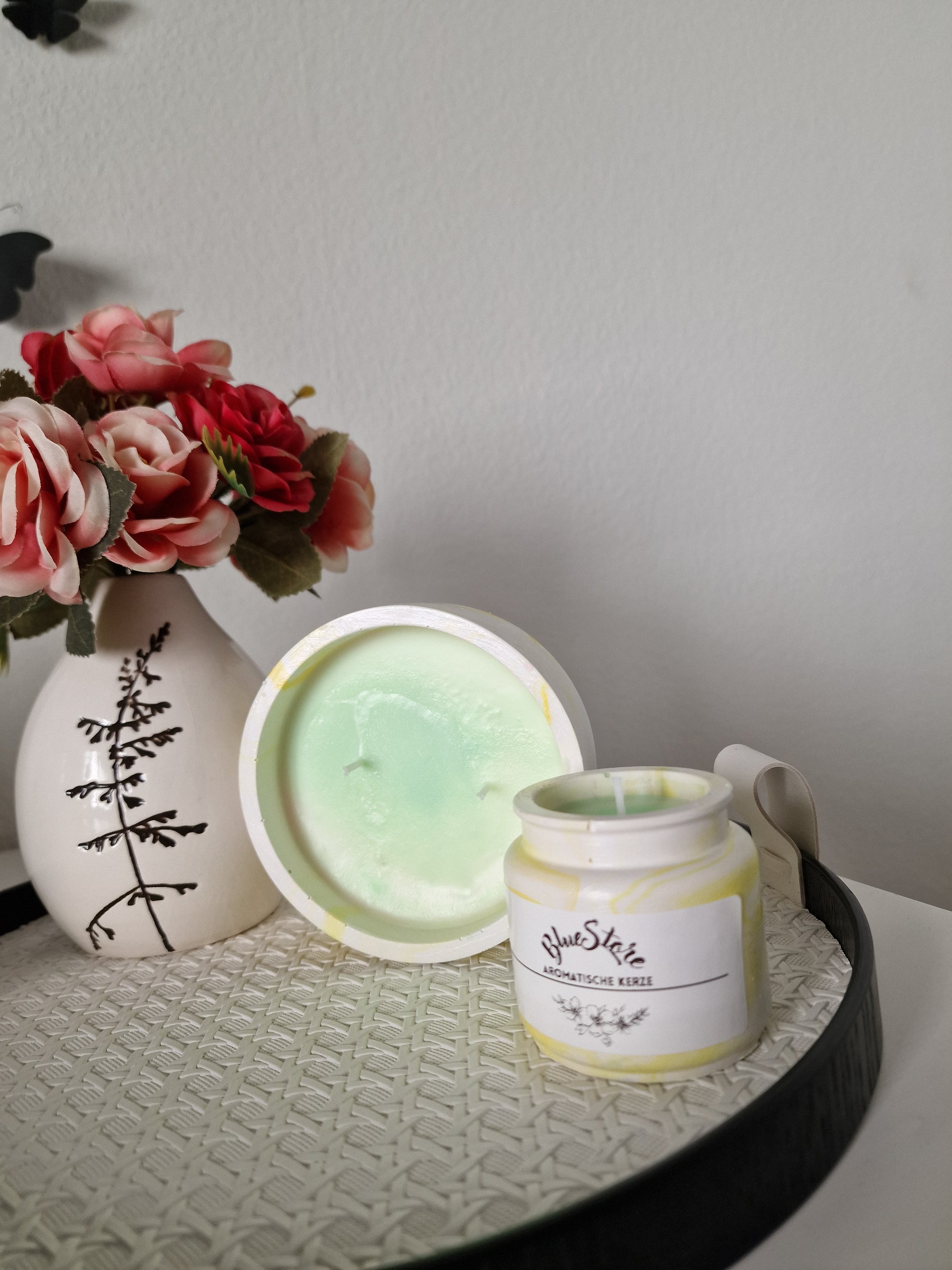 Beginne den Tag mit Frische und Leichtigkeit – Sommermorgen ist eine handgemachte Duftkerze, die dich mit ihrem lebendigen Duftmix aus Wassermelone, Minze und Zitronengras sofort in Sommerstimmung versetzt.