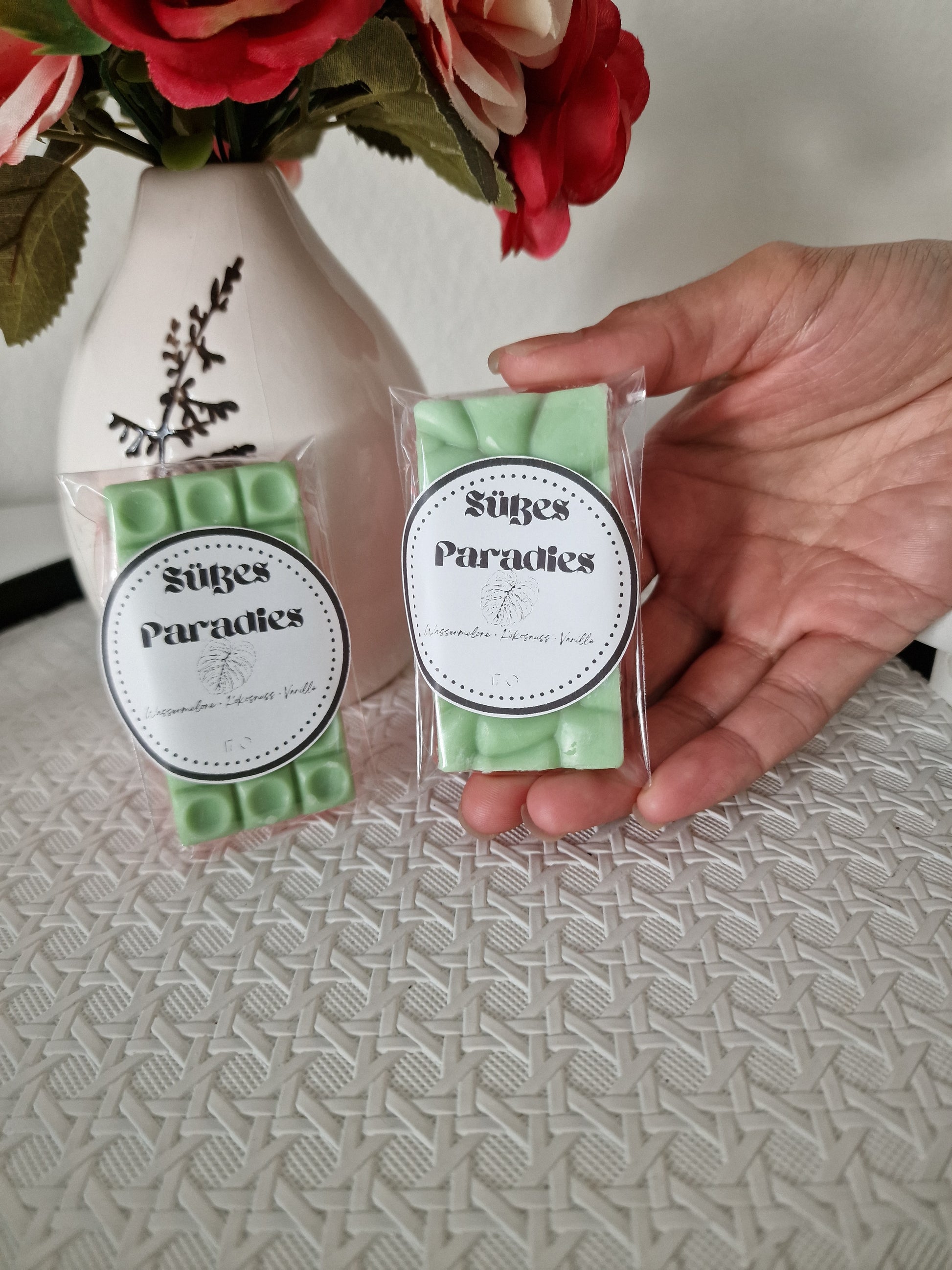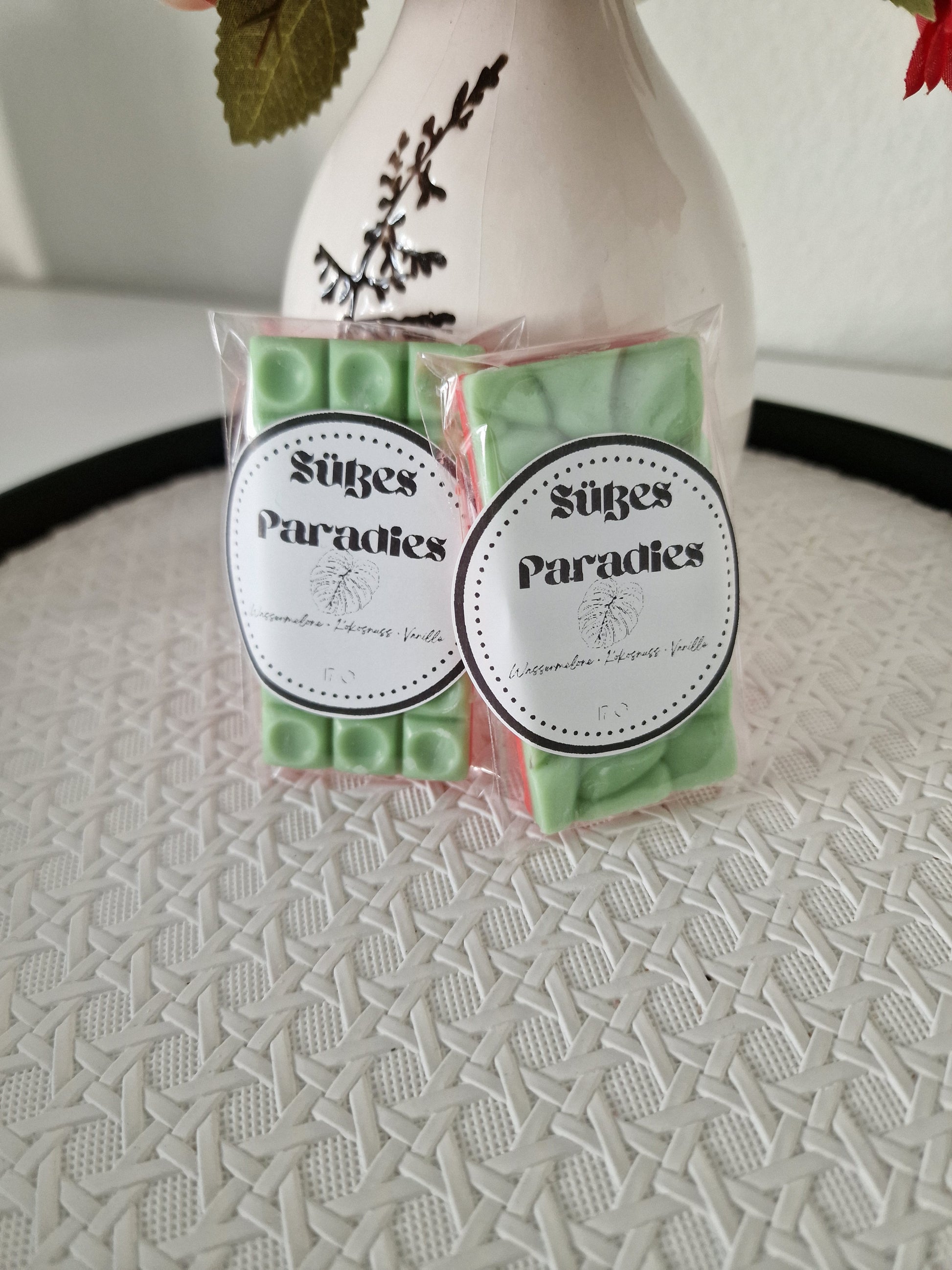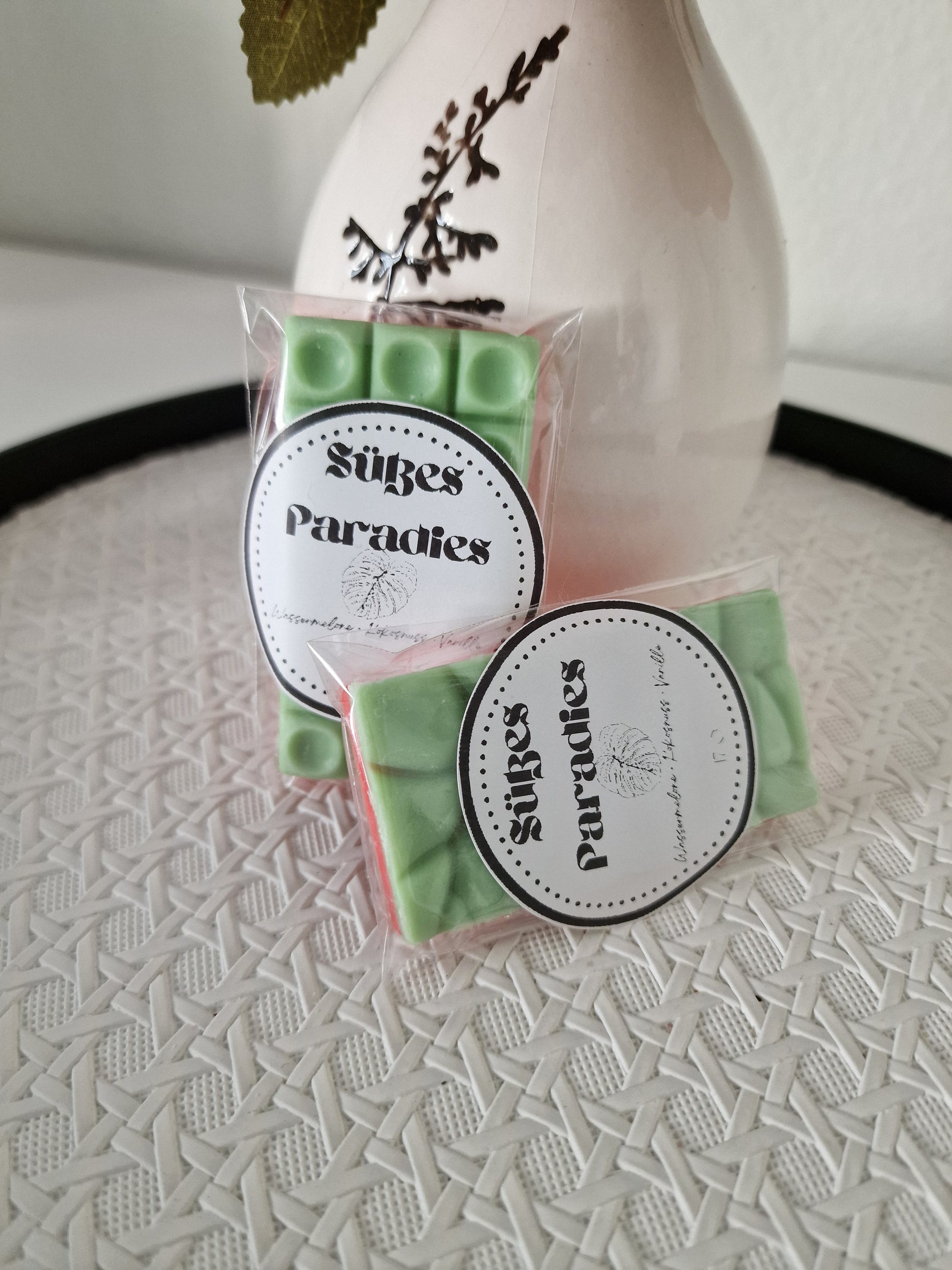 Tauchen Sie ein in den sommerlichen Duft unserer handgefertigten Wax Melts mit Wassermelone, Kokosnuss und Vanille.