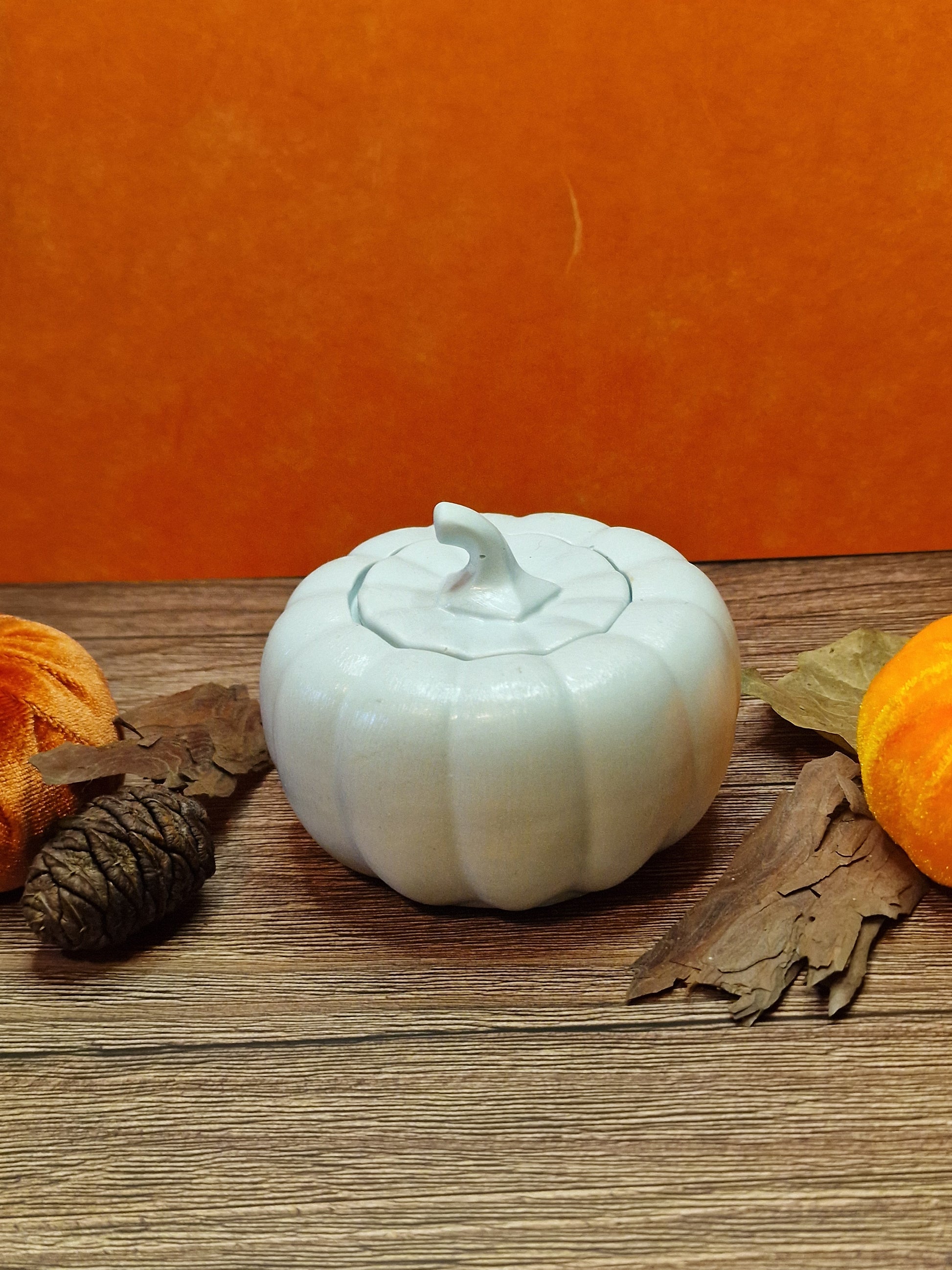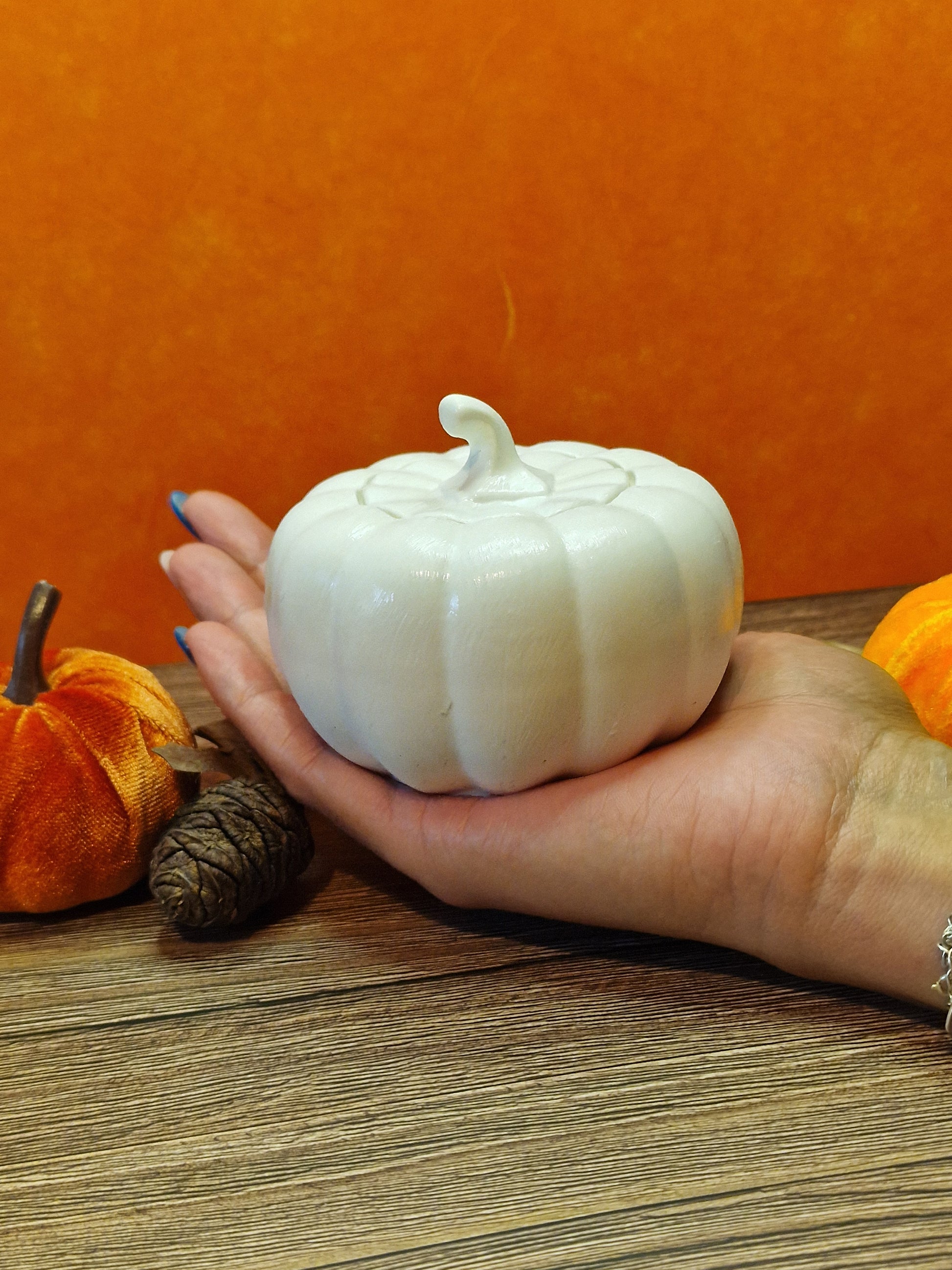 - Material Pot: handgefertigter Gips, Kürbisform